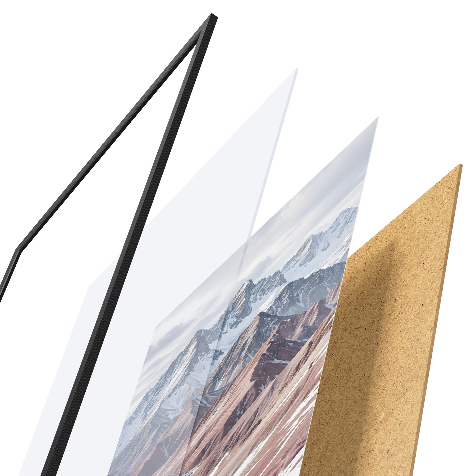 Il poster è composto da cornice, plexiglass, immagine stampata e supporto in truciolato. Il poster può essere immediatamente appeso alla parete grazie ai supporti sul retro.