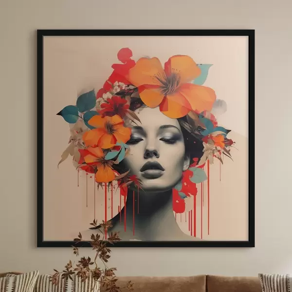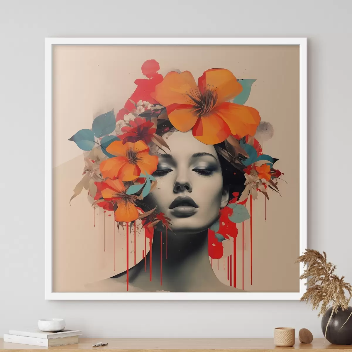 Poster Ritratto di ragazza in stile collage con fiori f41271