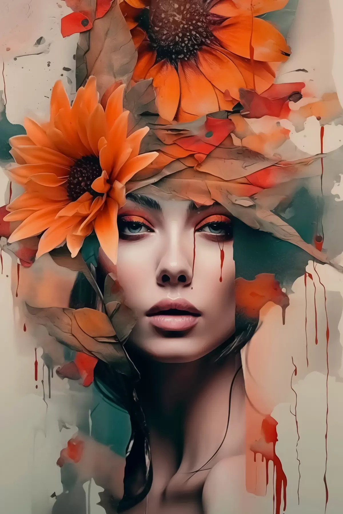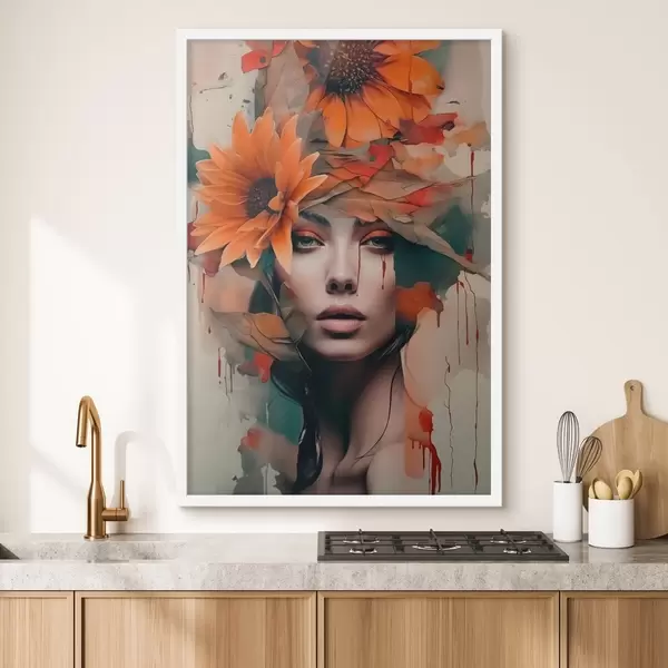Poster Ritratto a collage di una ragazza con fiori f41274