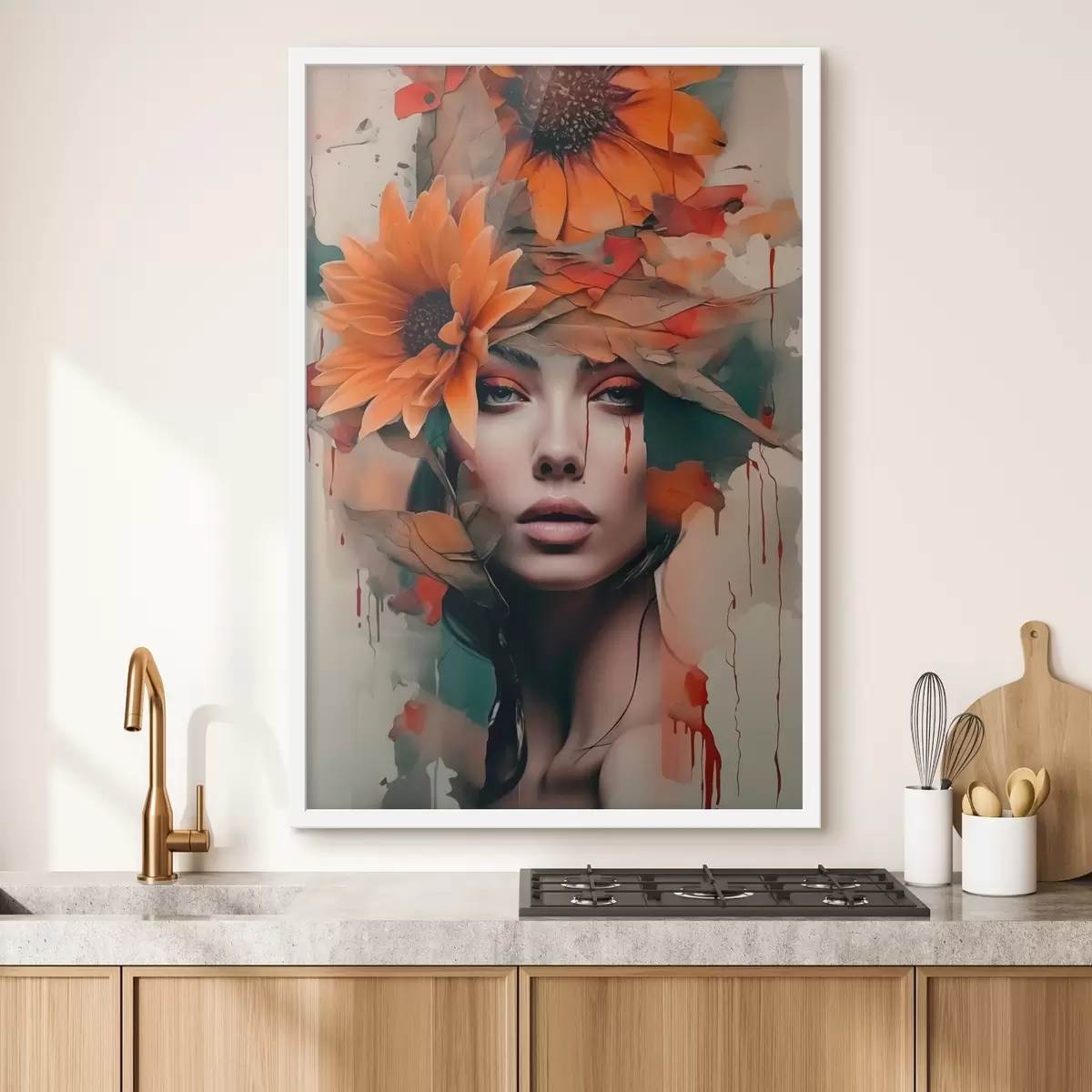 Poster Ritratto a collage di una ragazza con fiori Nr f41274