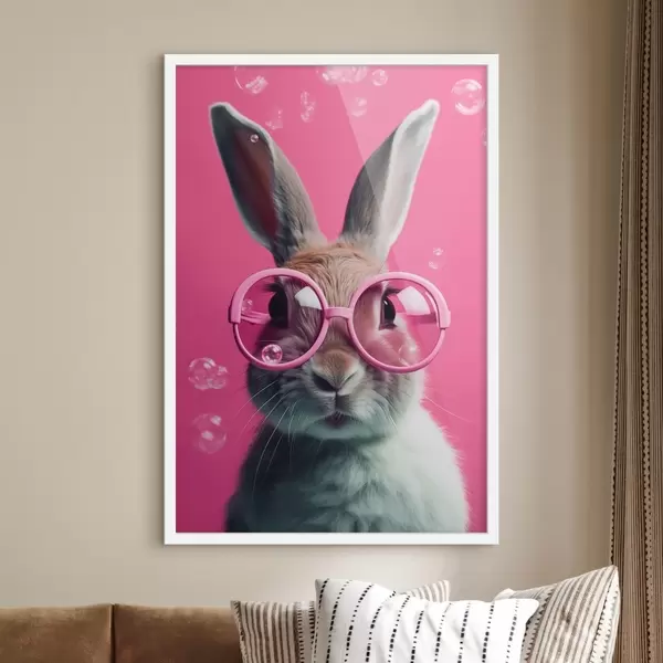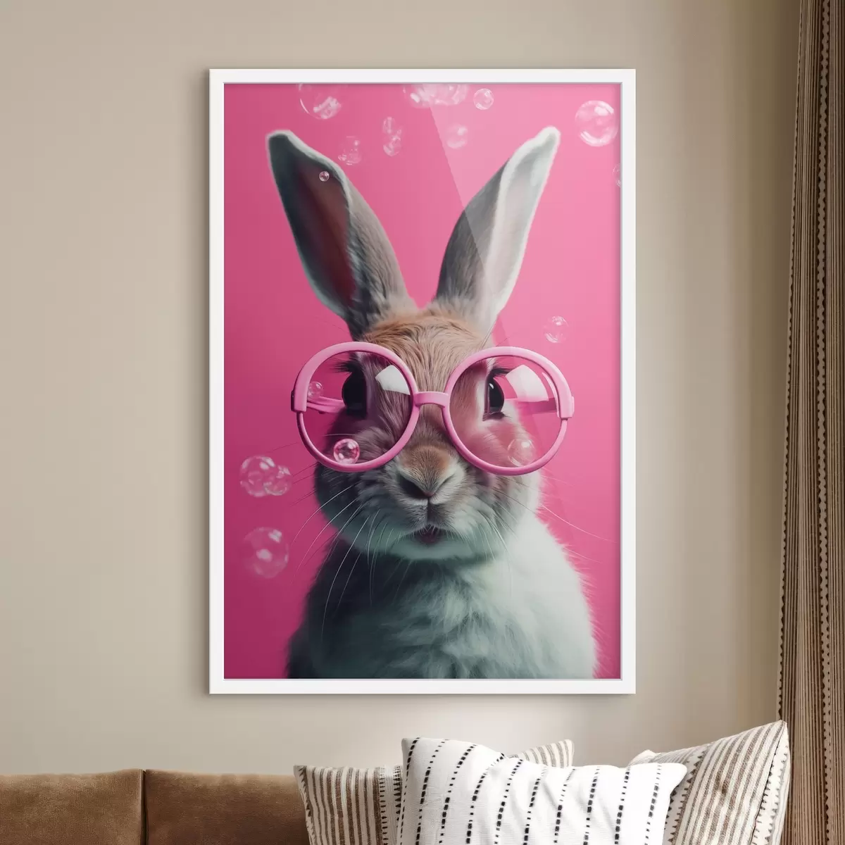 Poster Coniglio con occhiali rosa su sfondo rosa Nr f41280