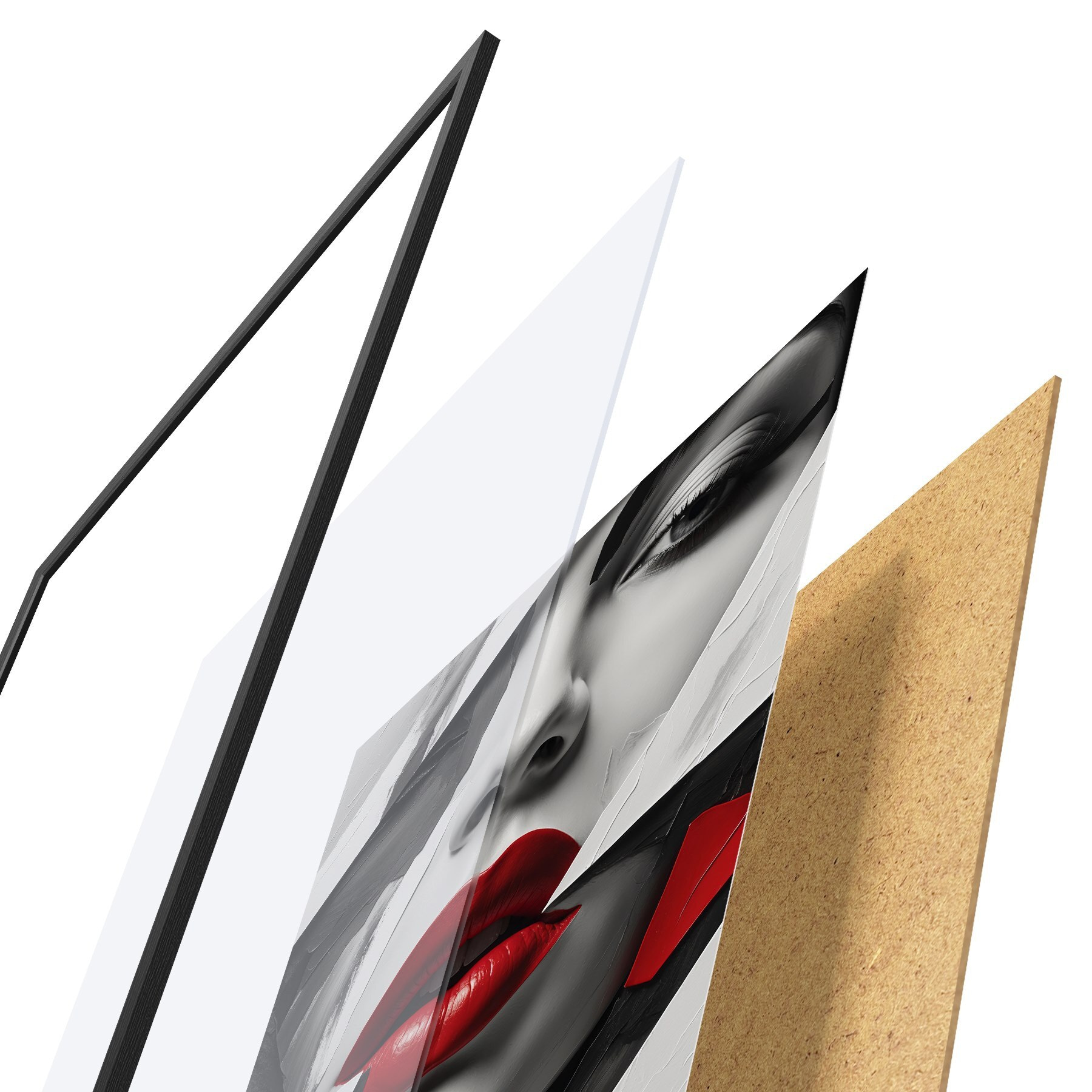 Il poster è composto da cornice, plexiglass, immagine stampata e supporto in truciolato. Il poster può essere immediatamente appeso alla parete grazie ai supporti sul retro.