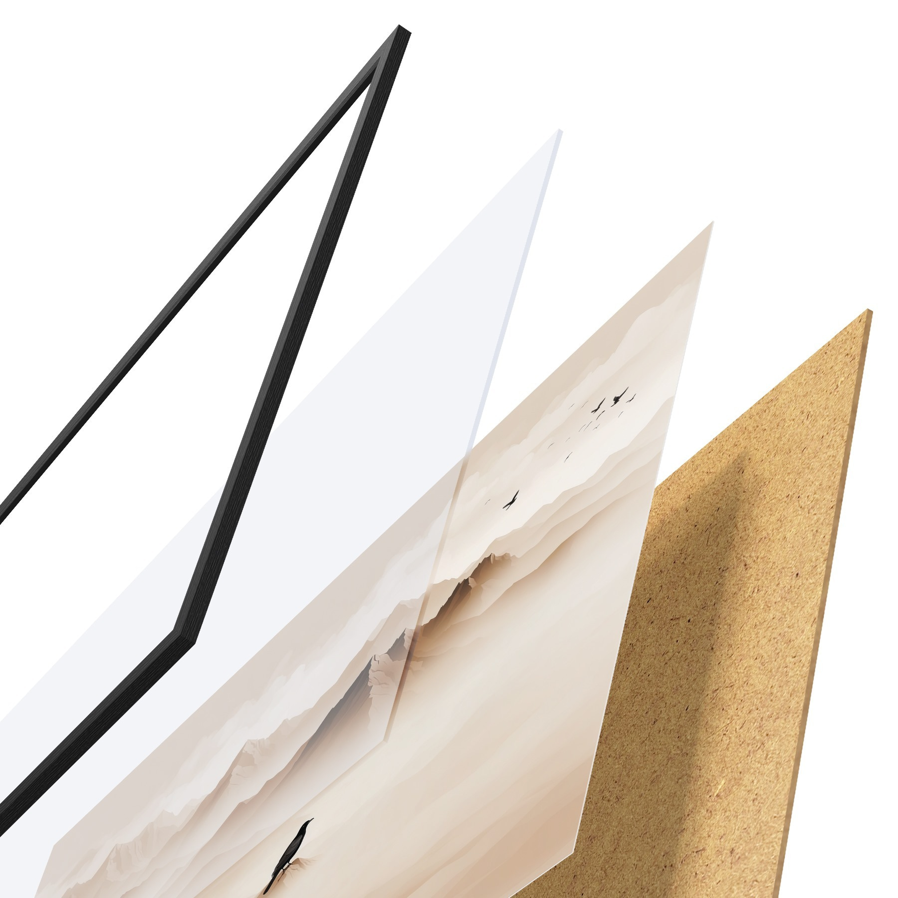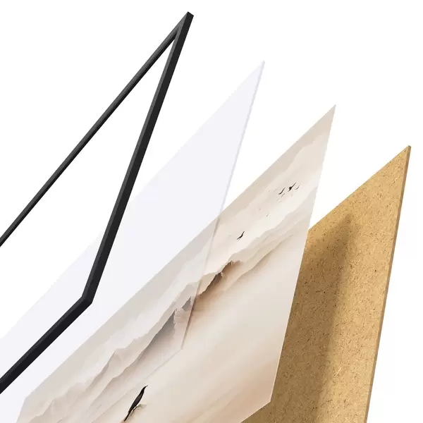 Il poster è composto da cornice, plexiglass, immagine stampata e supporto in truciolato. Il poster può essere immediatamente appeso alla parete grazie ai supporti sul retro.