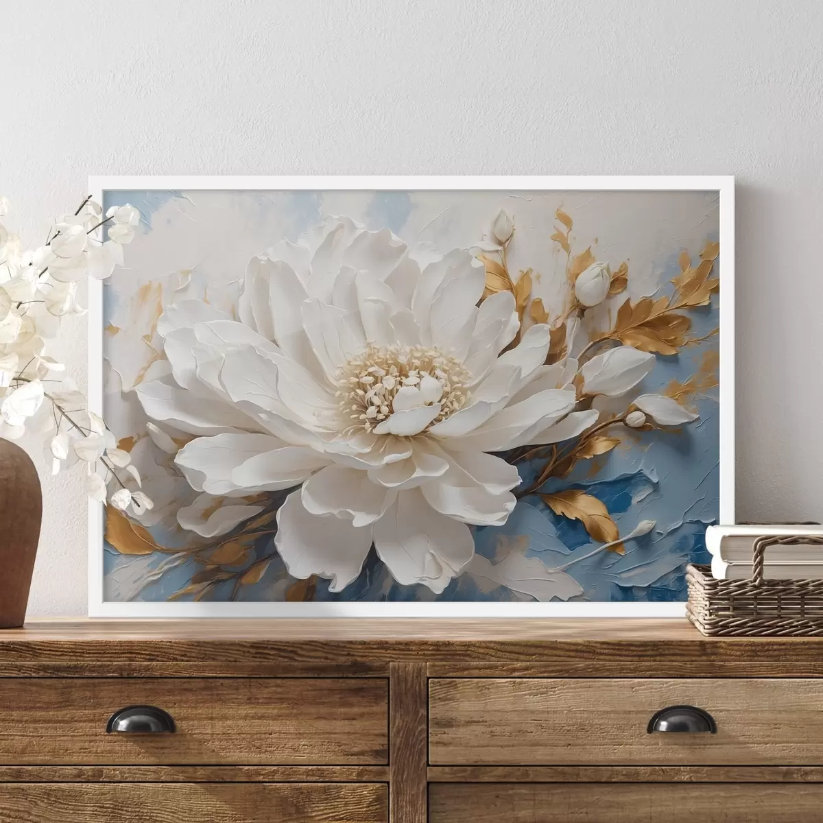 Poster Fiore bianco su sfondo bianco-blu Nr f41311