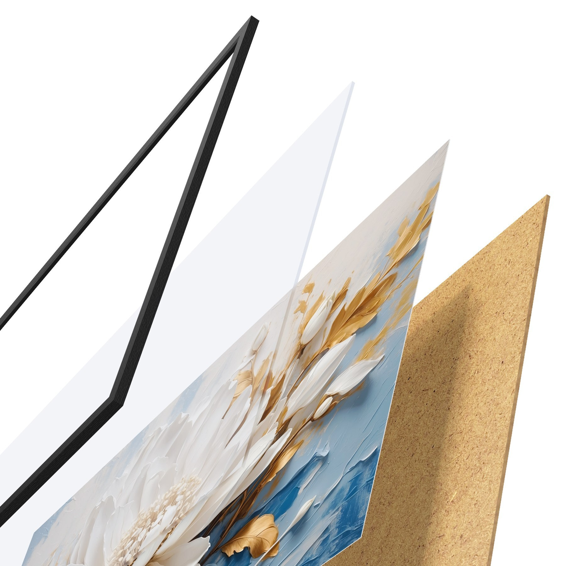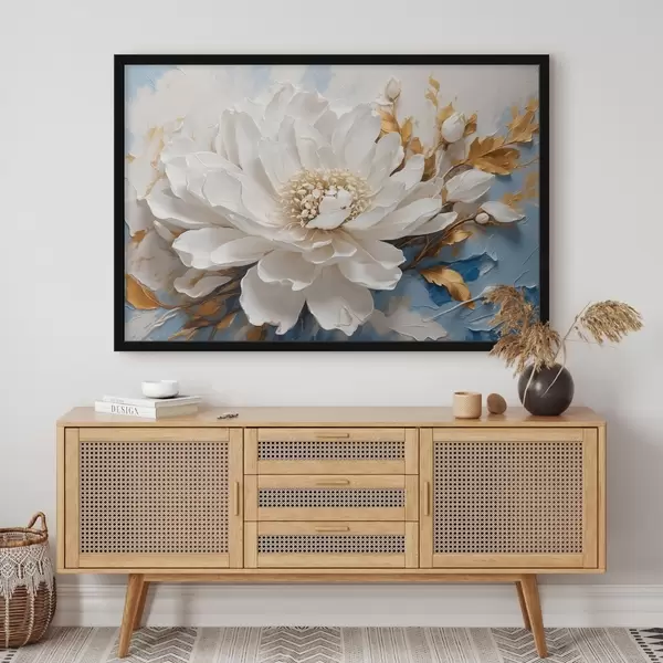 Poster Fiore bianco su sfondo bianco-blu f41311