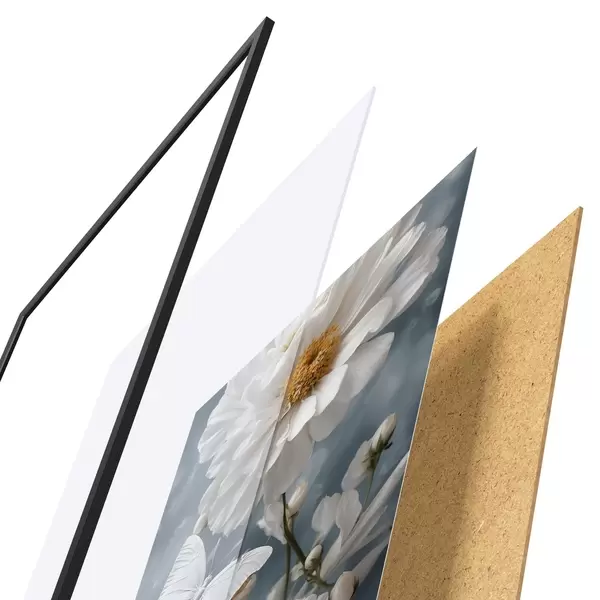 Il poster è composto da cornice, plexiglass, immagine stampata e supporto in truciolato. Il poster può essere immediatamente appeso alla parete grazie ai supporti sul retro.