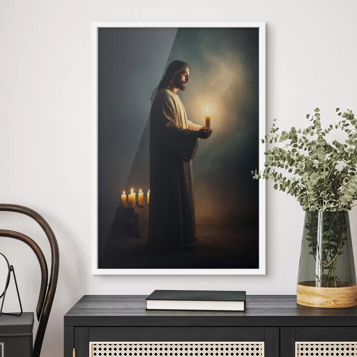 Poster Gesù Cristo con la candela nell'oscurità f41315