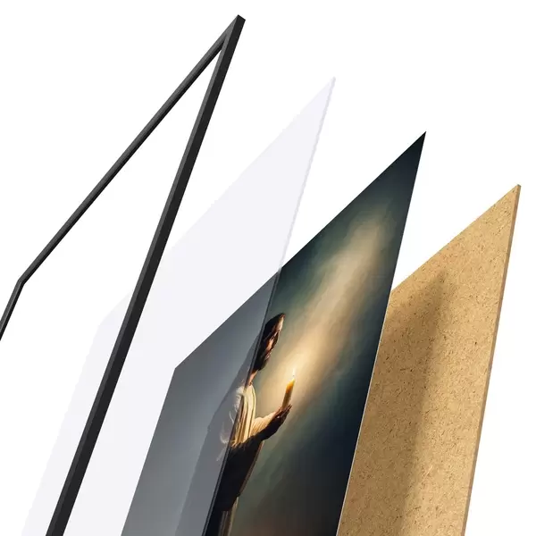 Il poster è composto da cornice, plexiglass, immagine stampata e supporto in truciolato. Il poster può essere immediatamente appeso alla parete grazie ai supporti sul retro.
