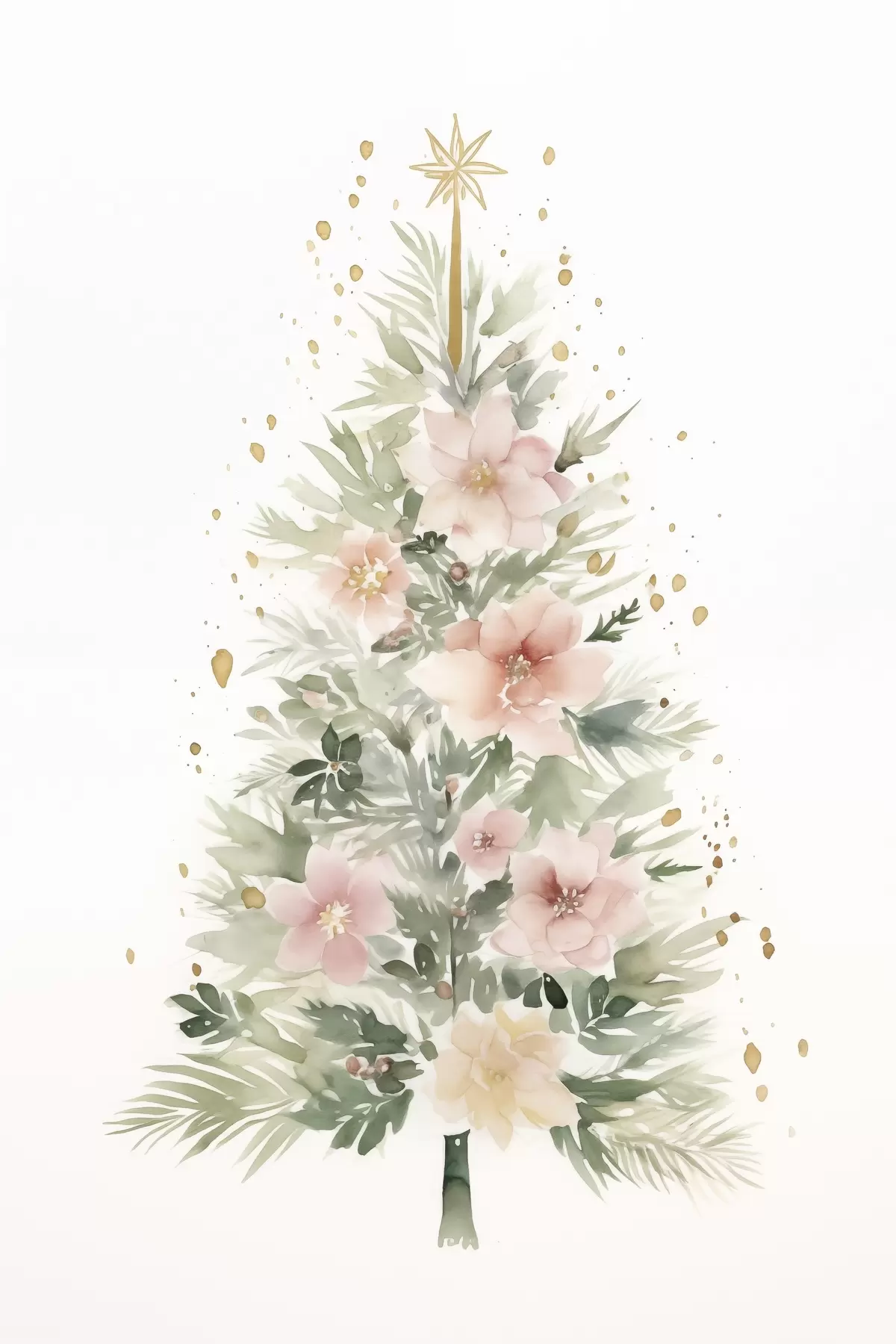 Poster Albero di Natale acquerellato, pino, floreale Nr f41360