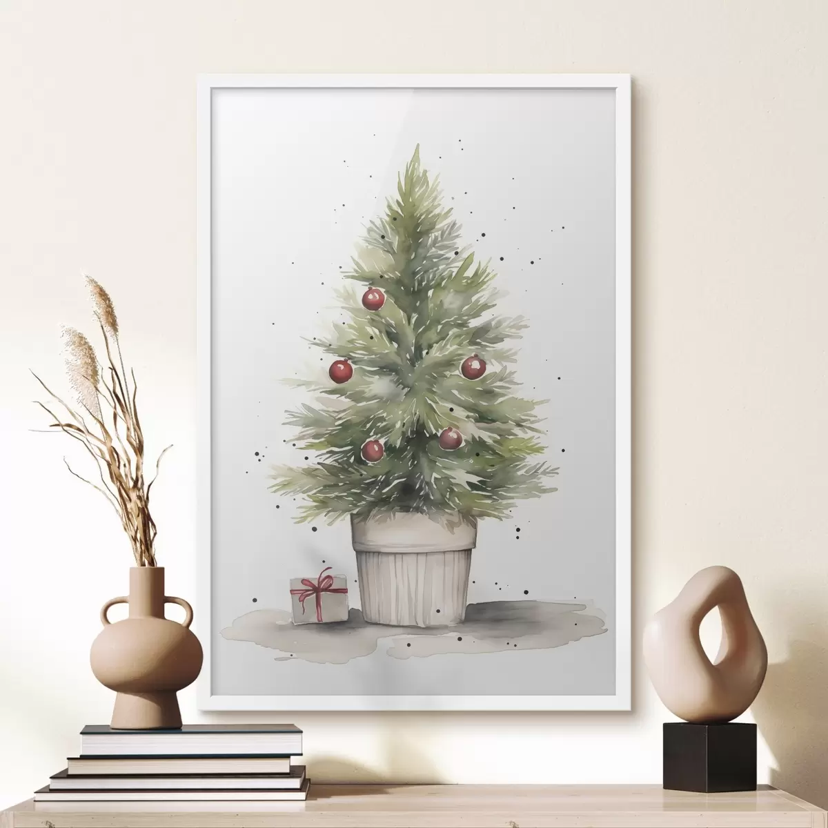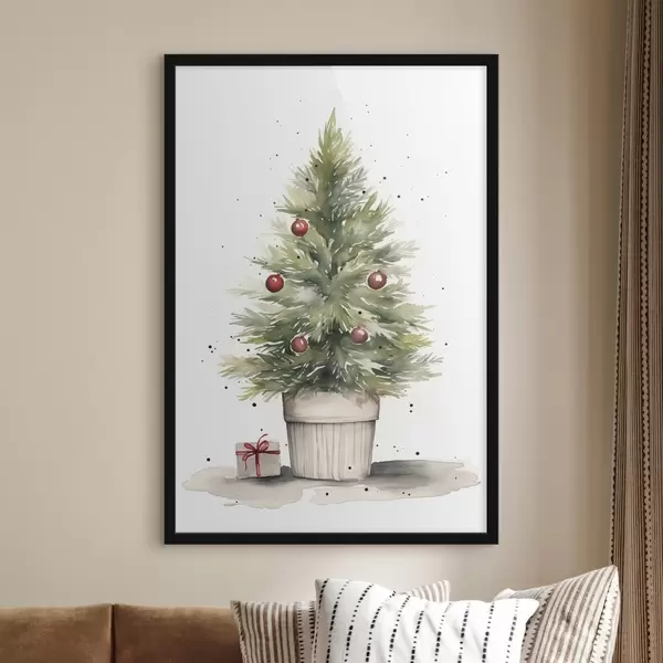 Poster Albero di Natale acquerellato nel vaso, pino, regalo Nr f41361