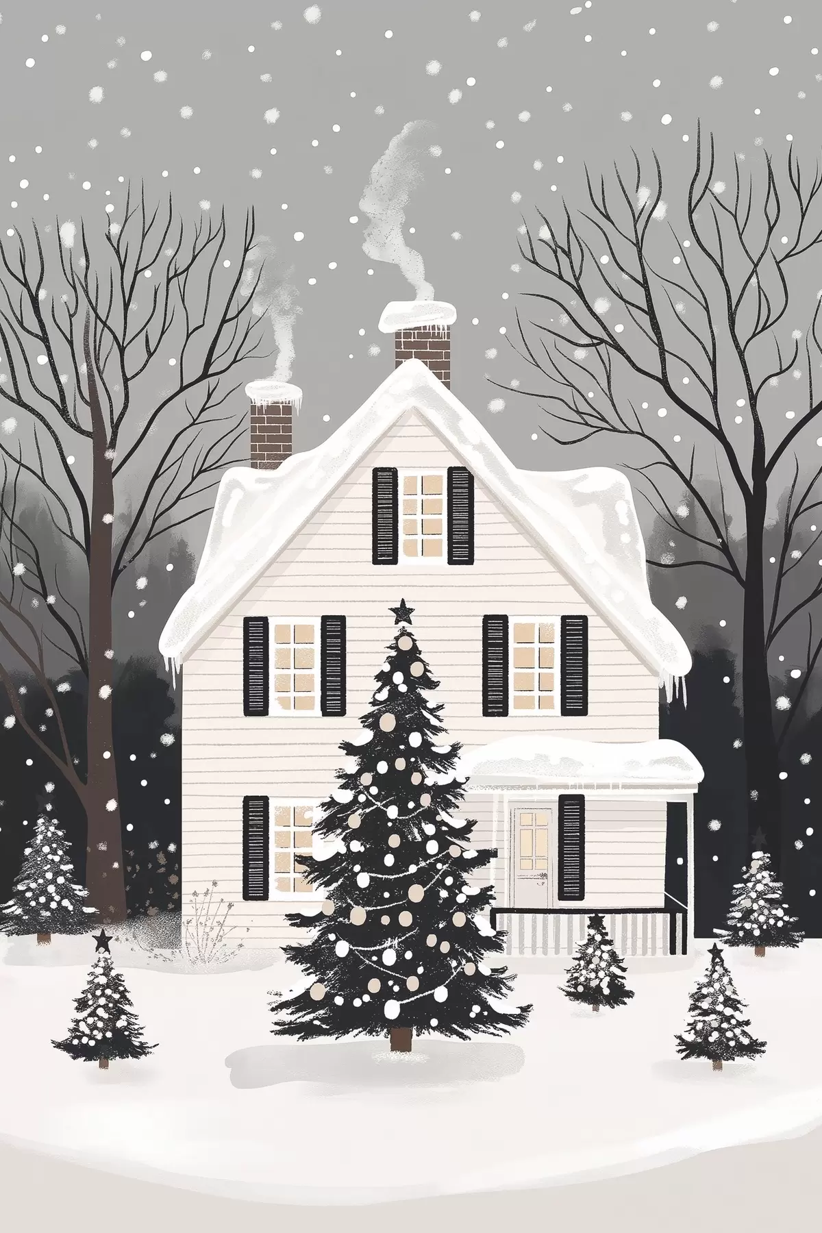 Poster Città invernale, pino decorato, Natale, foresta, bella casa f41371