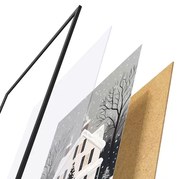 Il poster è composto da cornice, plexiglass, immagine stampata e supporto in truciolato. Il poster può essere immediatamente appeso alla parete grazie ai supporti sul retro.