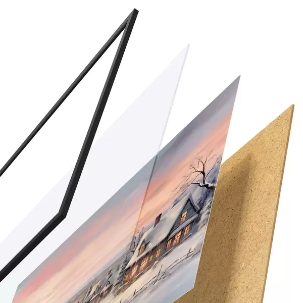 Il poster è composto da cornice, plexiglass, immagine stampata e supporto in truciolato. Il poster può essere immediatamente appeso alla parete grazie ai supporti sul retro.