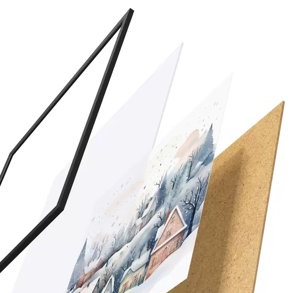 Il poster è composto da cornice, plexiglass, immagine stampata e supporto in truciolato. Il poster può essere immediatamente appeso alla parete grazie ai supporti sul retro.