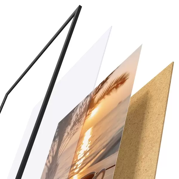 Il poster è composto da cornice, plexiglass, immagine stampata e supporto in truciolato. Il poster può essere immediatamente appeso alla parete grazie ai supporti sul retro.