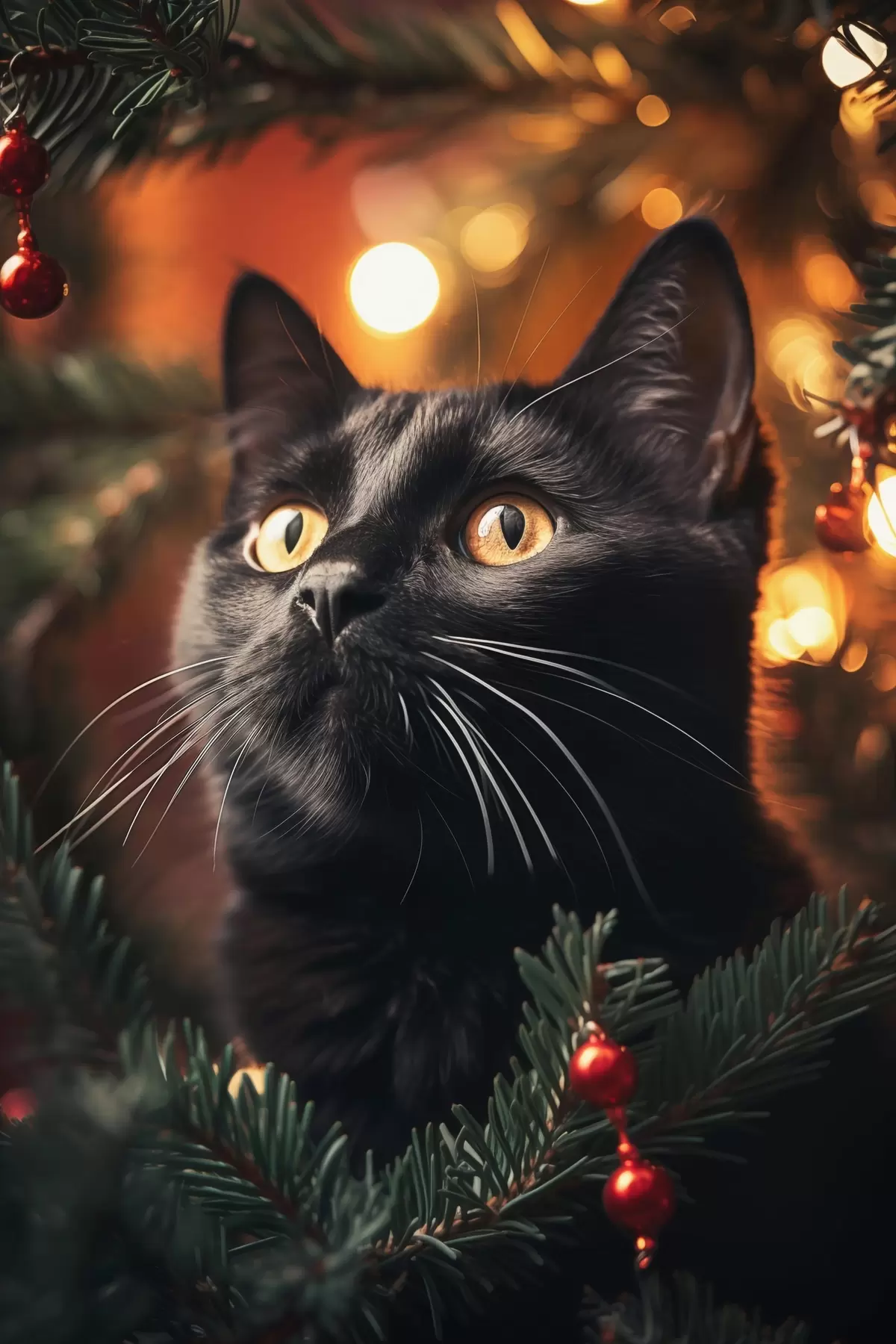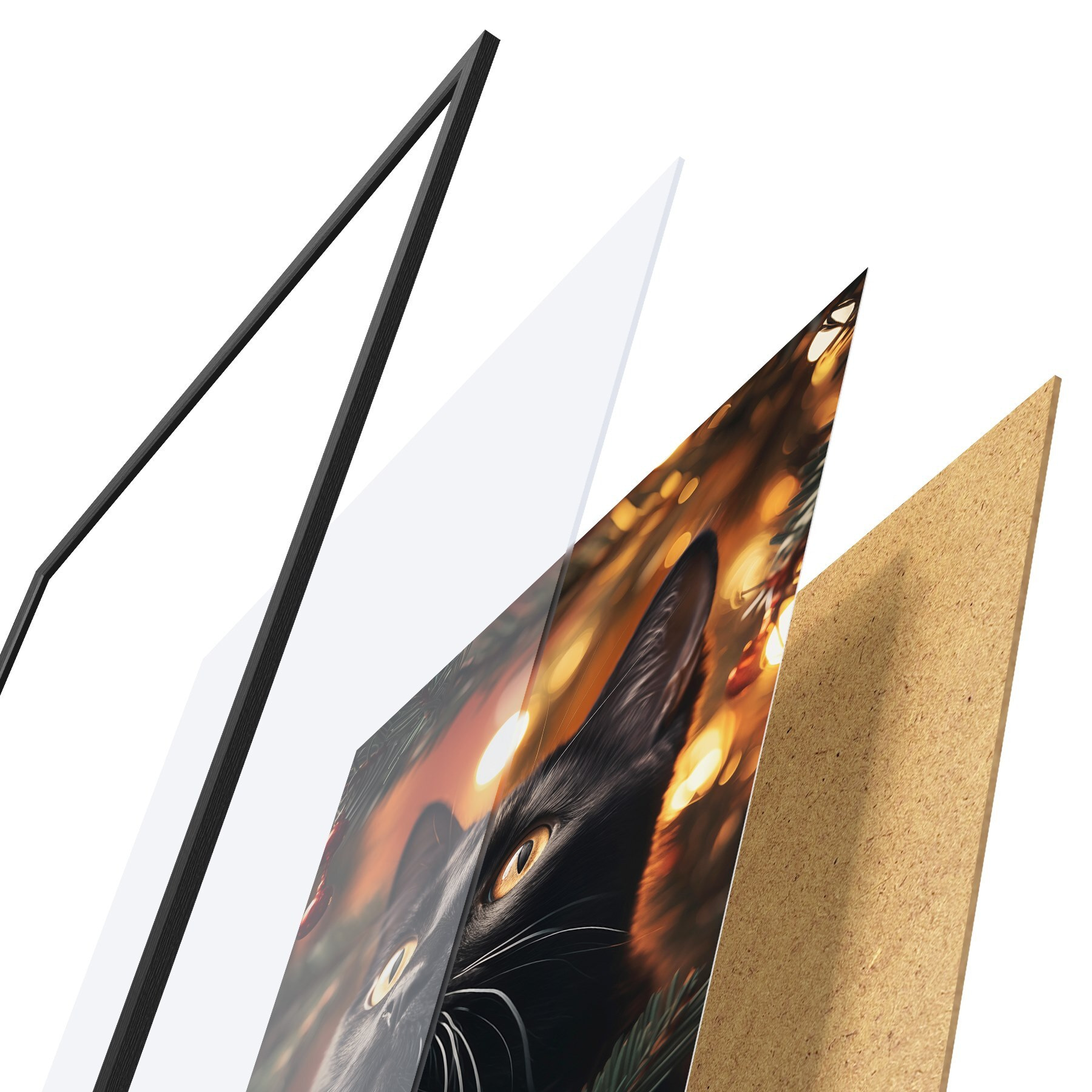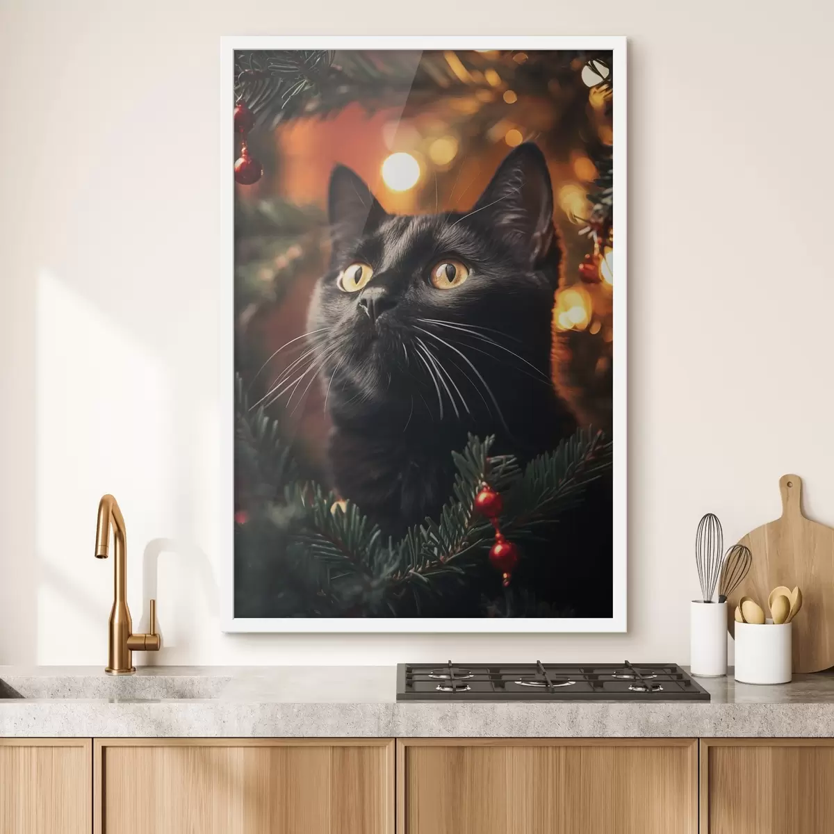 Poster Gatto nero sullo sfondo delle luci di Capodanno Nr f41441