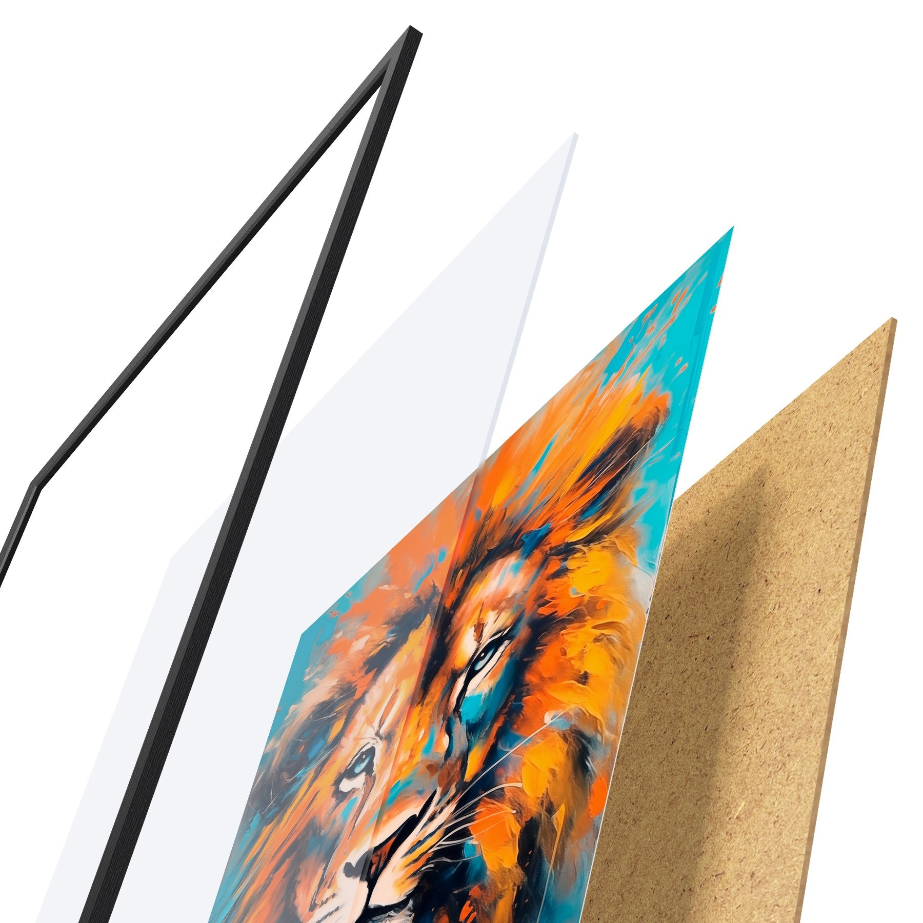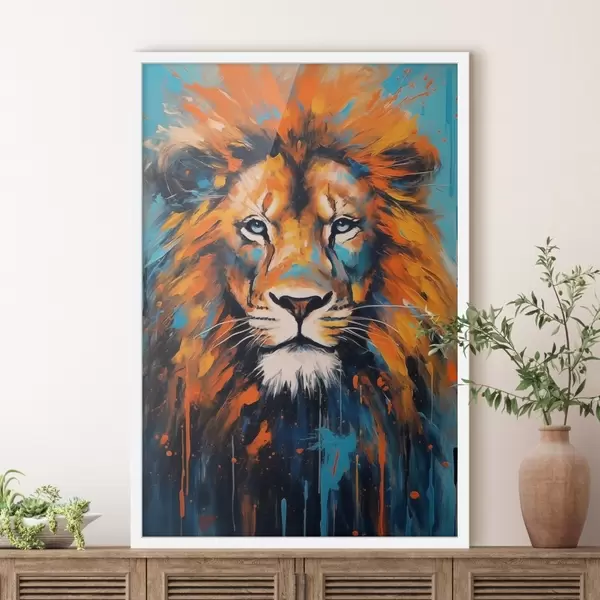 Poster Luminoso leone astratto dai toni blu fuoco Nr f41480