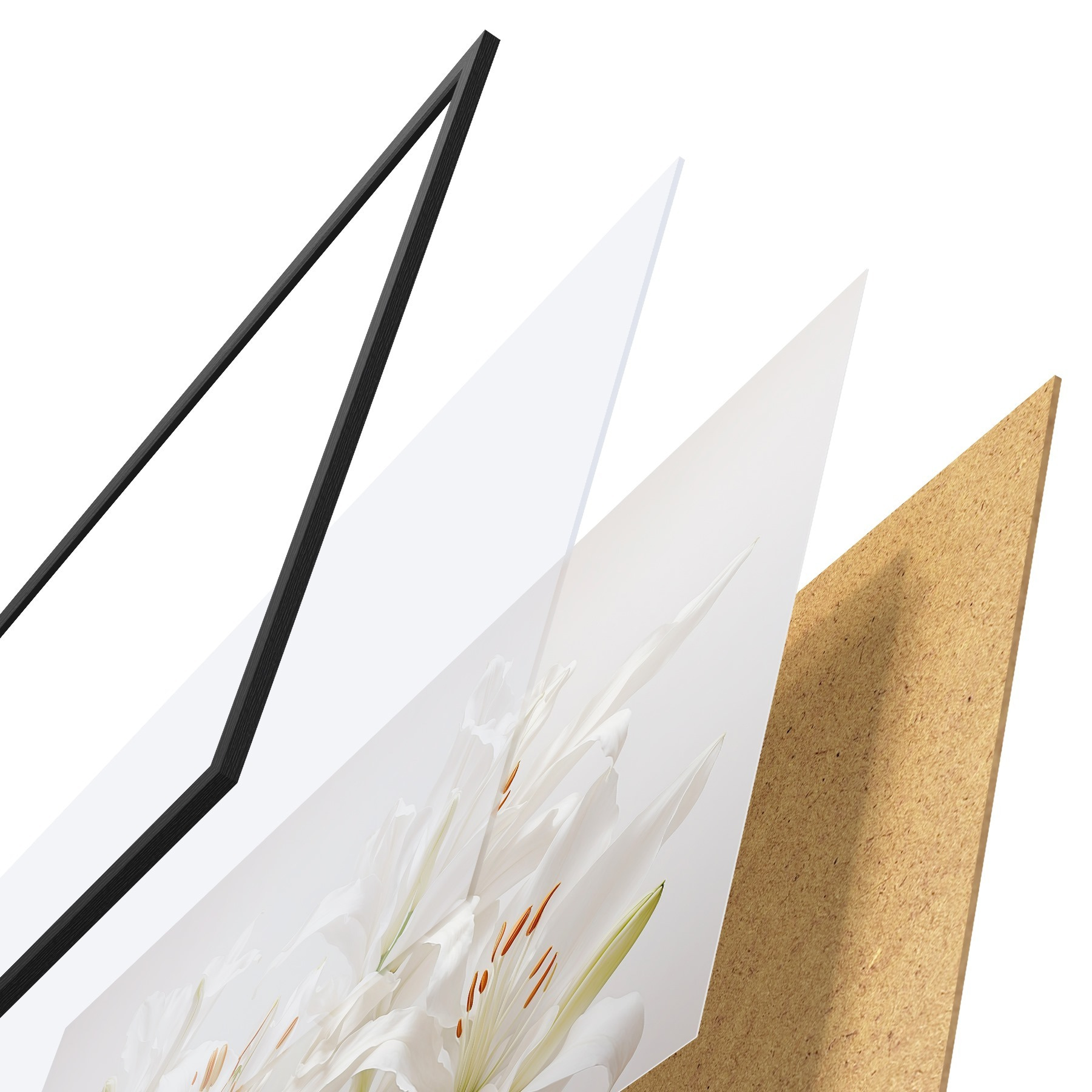 Il poster è composto da cornice, plexiglass, immagine stampata e supporto in truciolato. Il poster può essere immediatamente appeso alla parete grazie ai supporti sul retro.