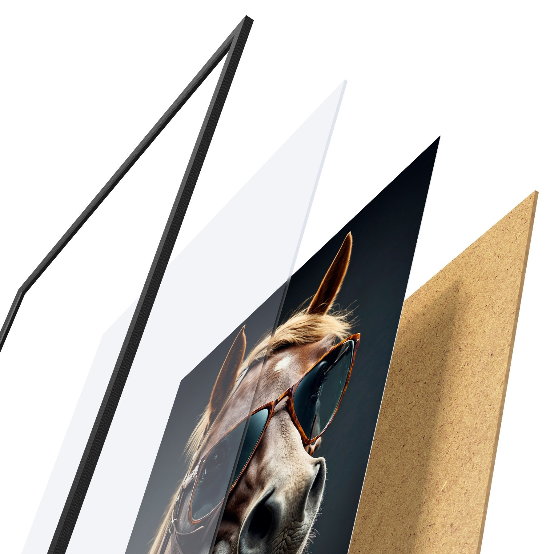 Il poster è composto da cornice, plexiglass, immagine stampata e supporto in truciolato. Il poster può essere immediatamente appeso alla parete grazie ai supporti sul retro.