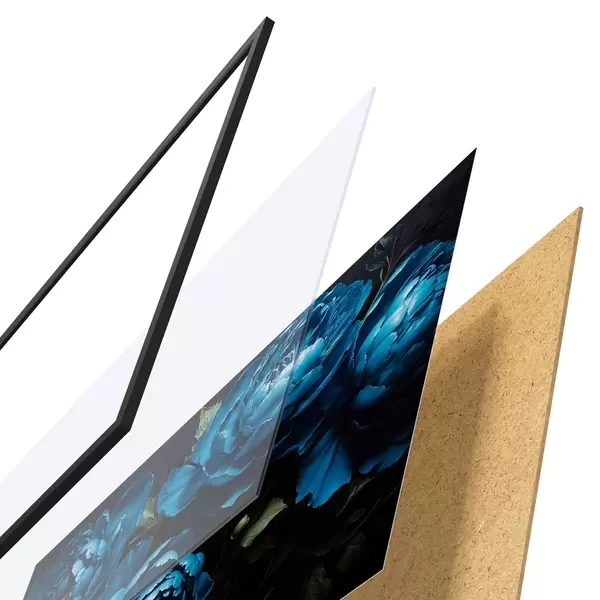 Il poster è composto da cornice, plexiglass, immagine stampata e supporto in truciolato. Il poster può essere immediatamente appeso alla parete grazie ai supporti sul retro.