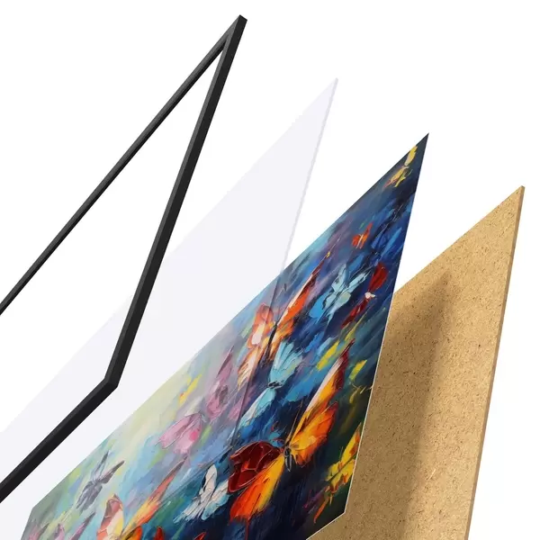 Il poster è composto da cornice, plexiglass, immagine stampata e supporto in truciolato. Il poster può essere immediatamente appeso alla parete grazie ai supporti sul retro.