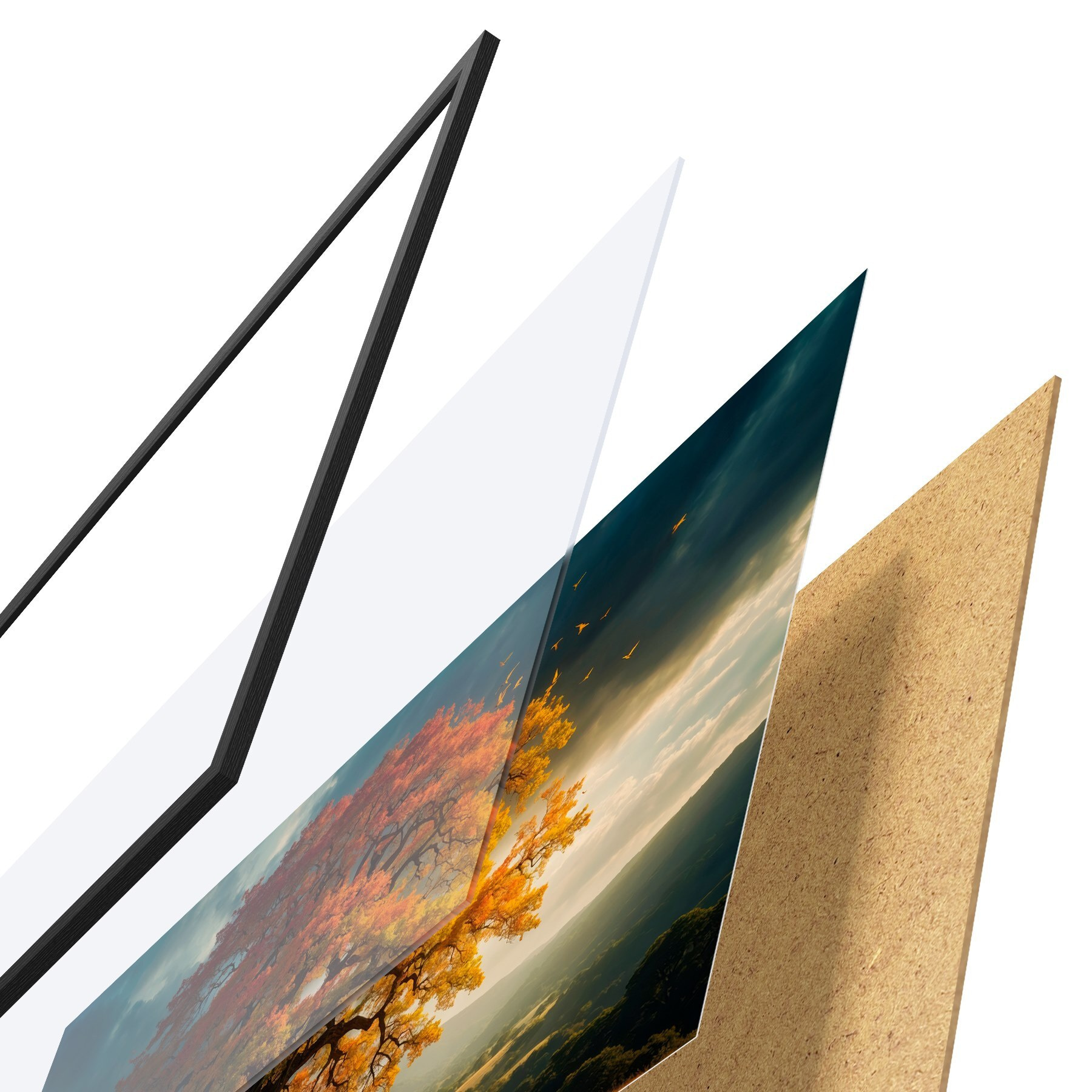 Il poster è composto da cornice, plexiglass, immagine stampata e supporto in truciolato. Il poster può essere immediatamente appeso alla parete grazie ai supporti sul retro.