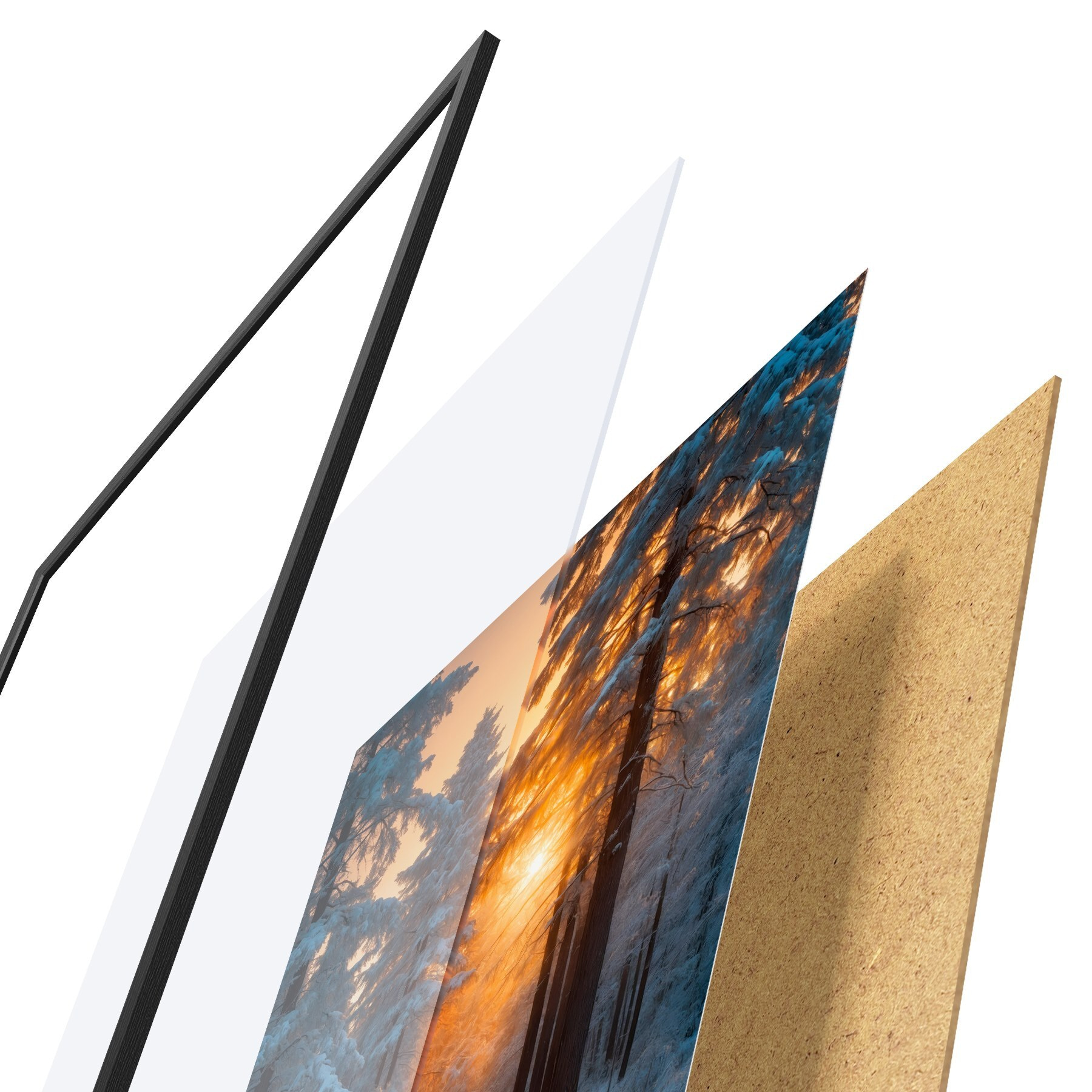 Il poster è composto da cornice, plexiglass, immagine stampata e supporto in truciolato. Il poster può essere immediatamente appeso alla parete grazie ai supporti sul retro.