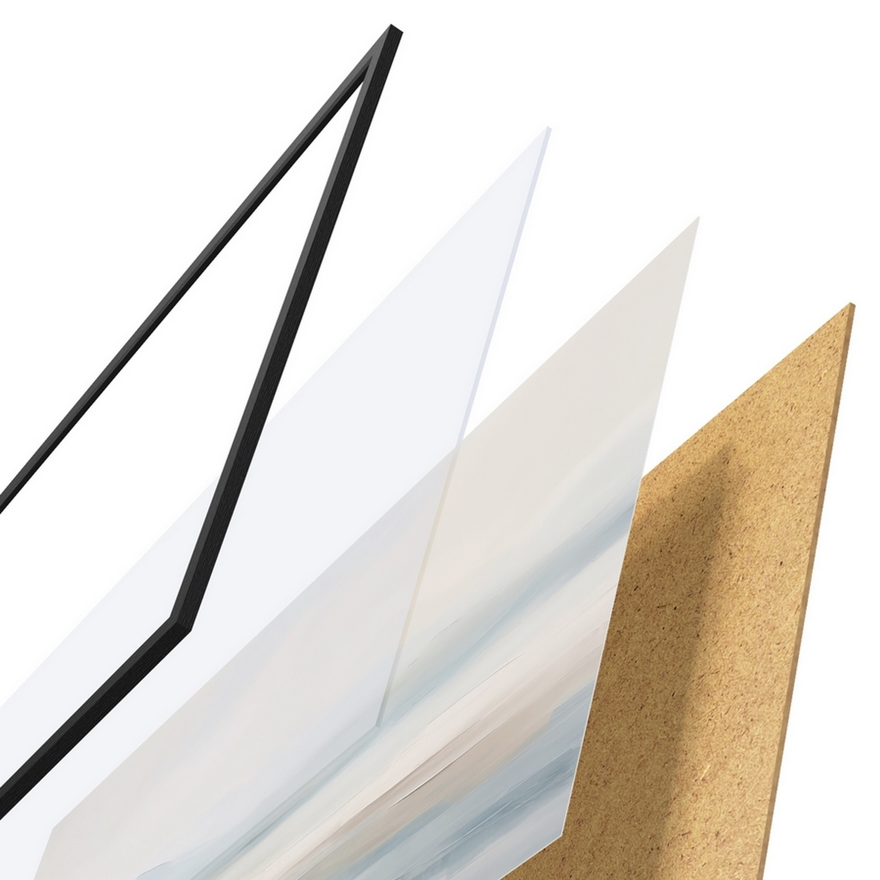 Il poster è composto da cornice, plexiglass, immagine stampata e supporto in truciolato. Il poster può essere immediatamente appeso alla parete grazie ai supporti sul retro.