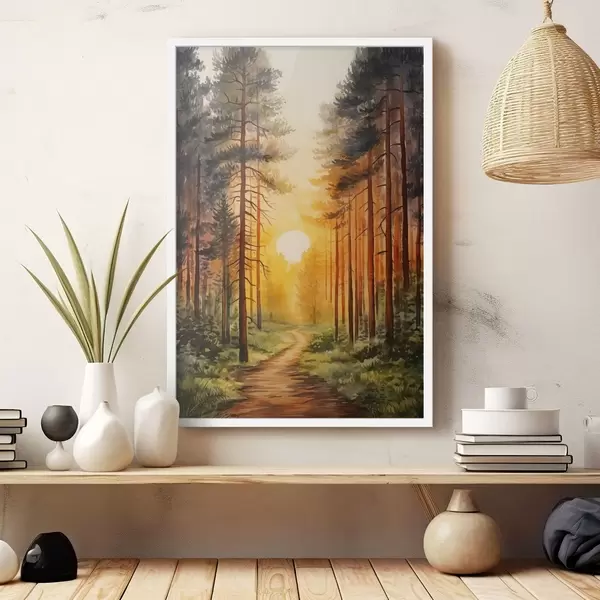 Poster Tramonto in pineta, acquerello, bellezza della natura Nr f41638