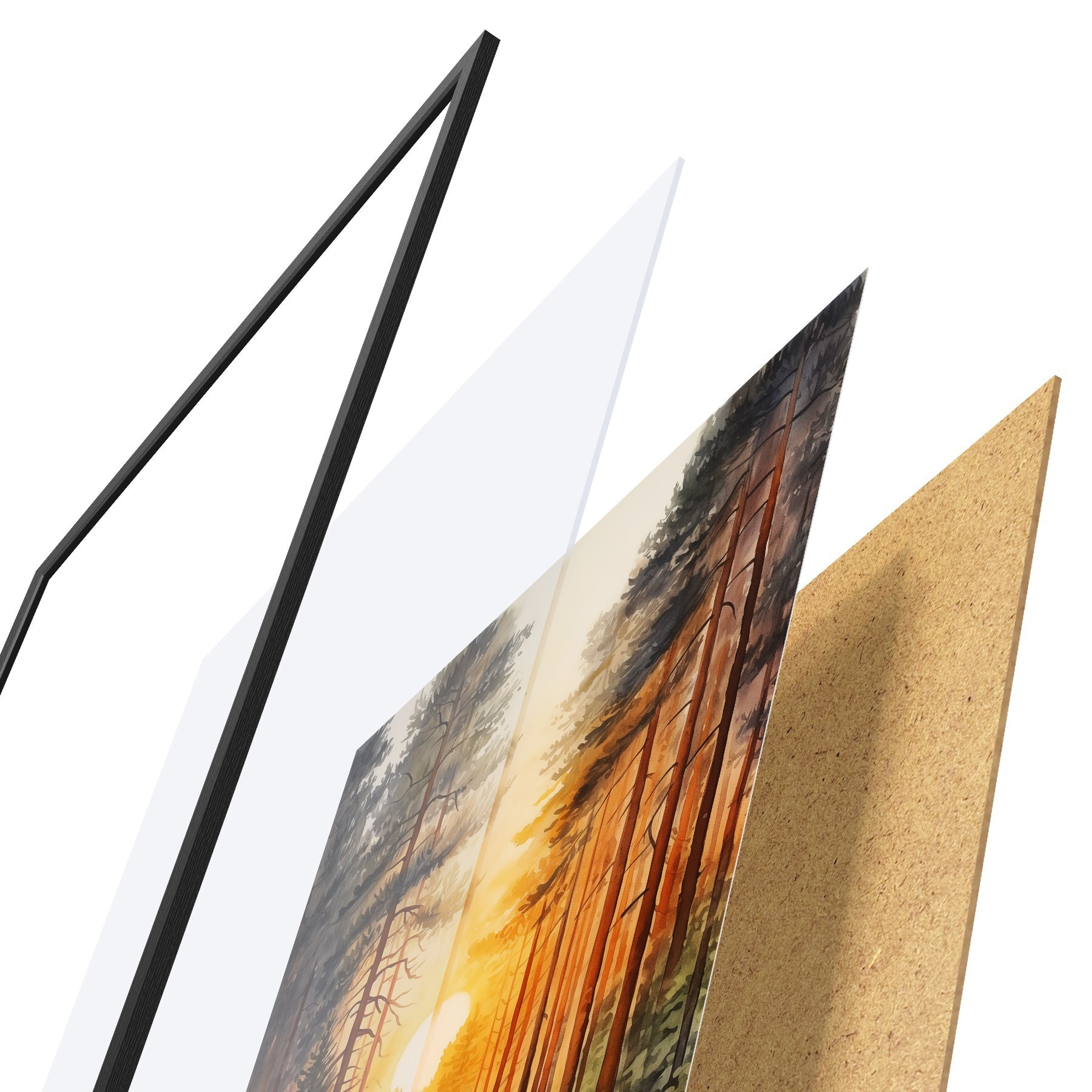Il poster è composto da cornice, plexiglass, immagine stampata e supporto in truciolato. Il poster può essere immediatamente appeso alla parete grazie ai supporti sul retro.