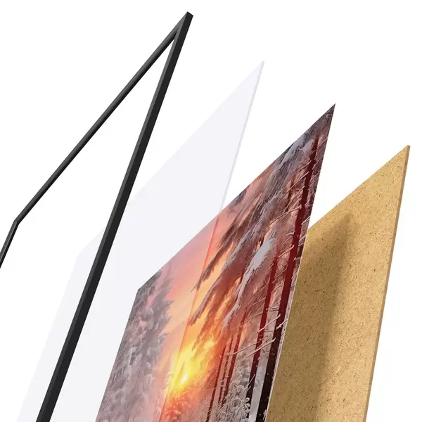 Il poster è composto da cornice, plexiglass, immagine stampata e supporto in truciolato. Il poster può essere immediatamente appeso alla parete grazie ai supporti sul retro.