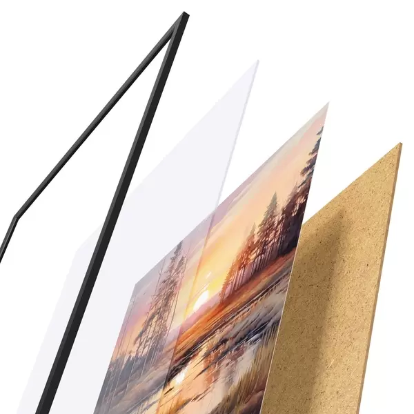 Il poster è composto da cornice, plexiglass, immagine stampata e supporto in truciolato. Il poster può essere immediatamente appeso alla parete grazie ai supporti sul retro.