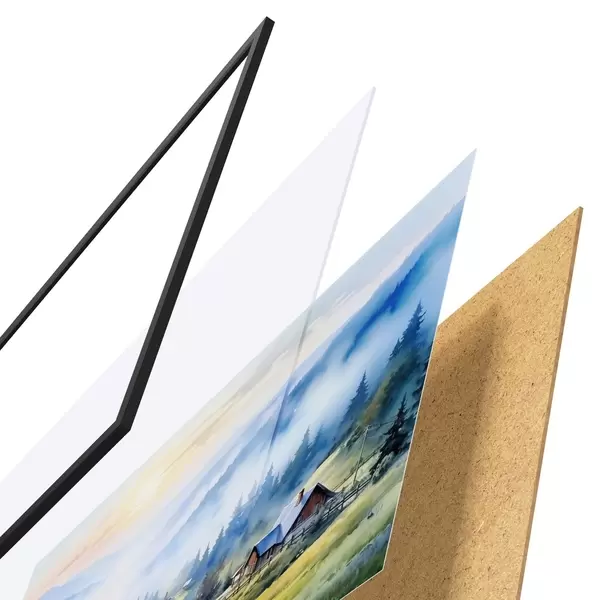 Il poster è composto da cornice, plexiglass, immagine stampata e supporto in truciolato. Il poster può essere immediatamente appeso alla parete grazie ai supporti sul retro.
