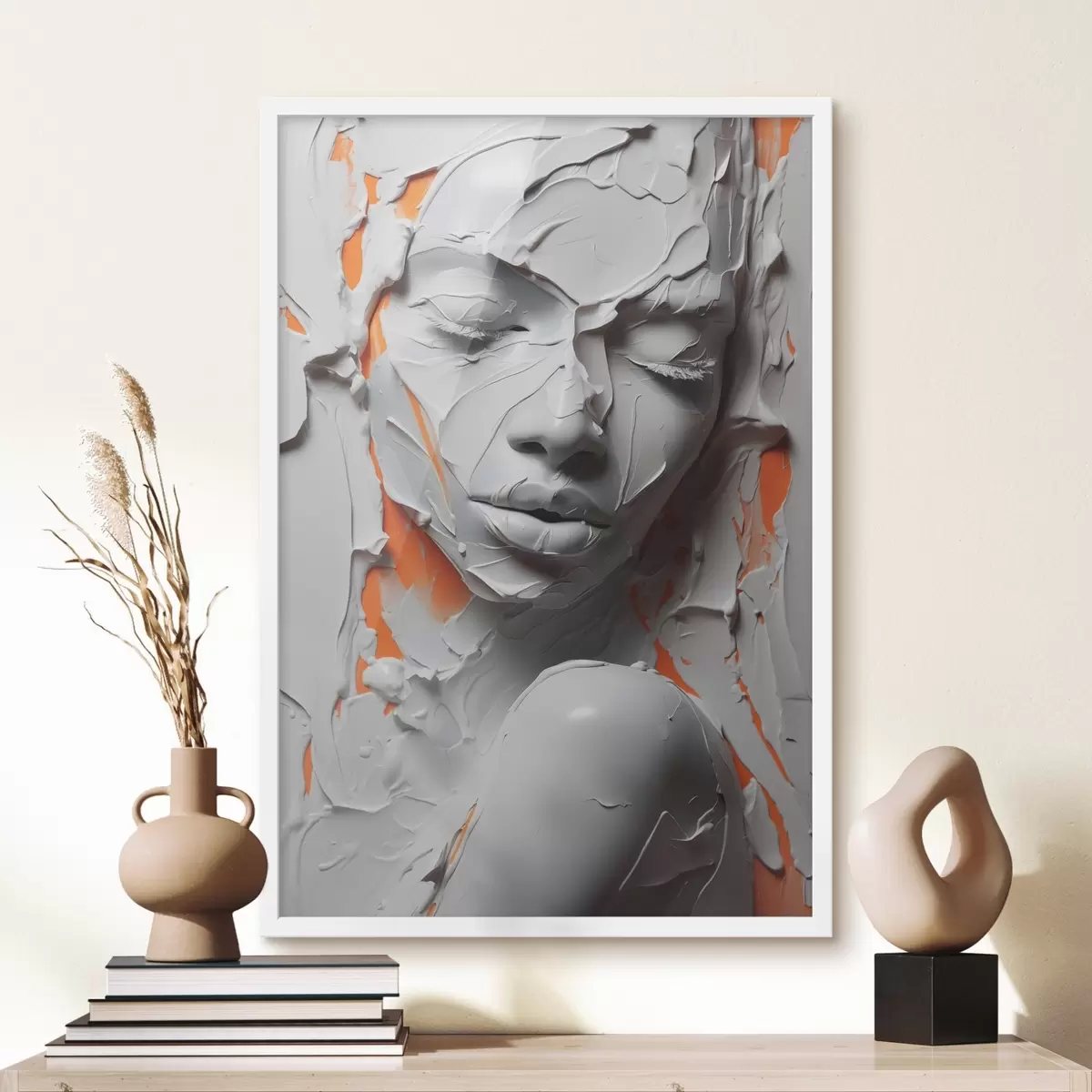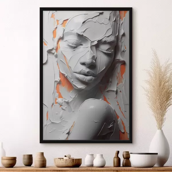 Poster Ritratto di ragazza in vernice bianca ad imitazione delle pennellate f41657
