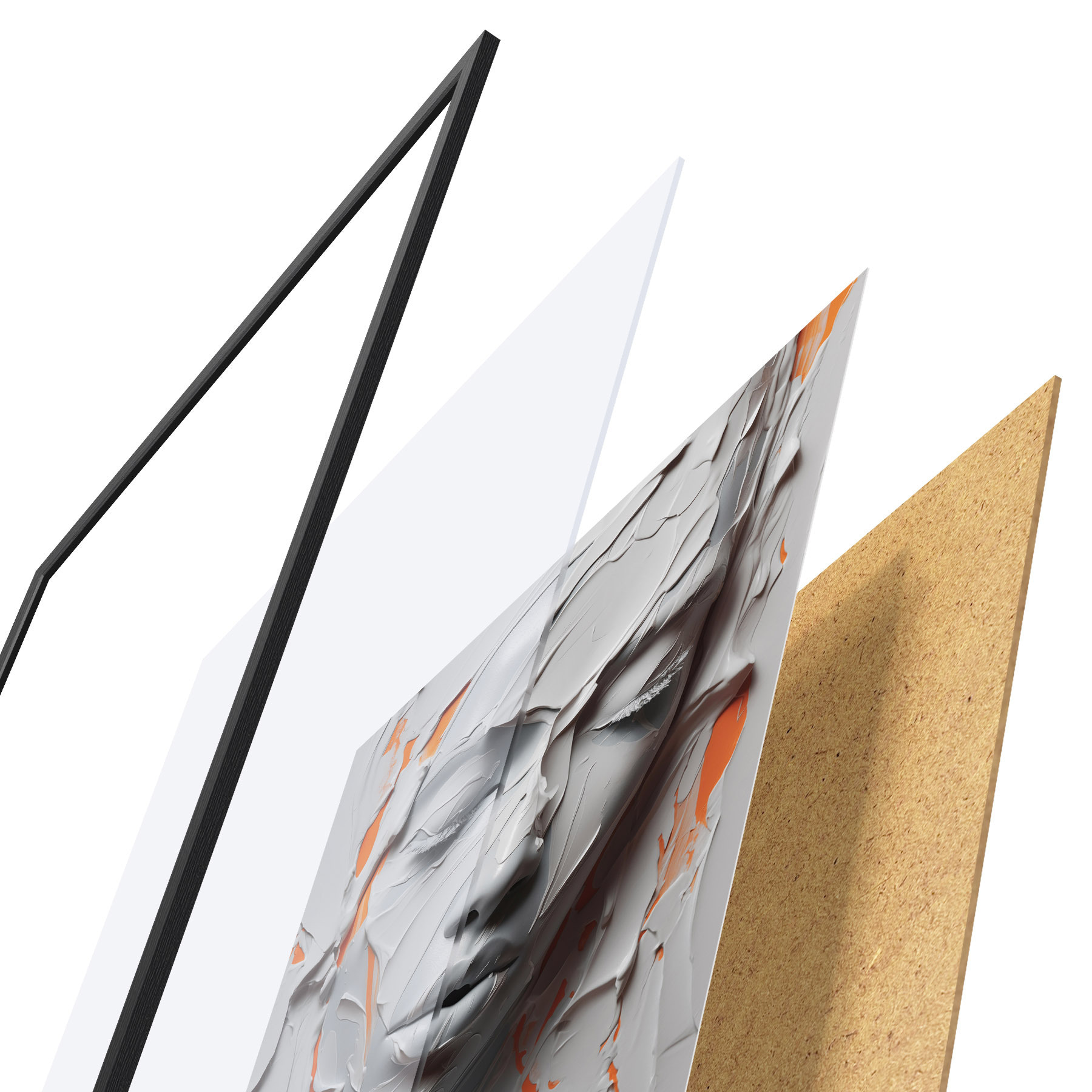 Il poster è composto da cornice, plexiglass, immagine stampata e supporto in truciolato. Il poster può essere immediatamente appeso alla parete grazie ai supporti sul retro.