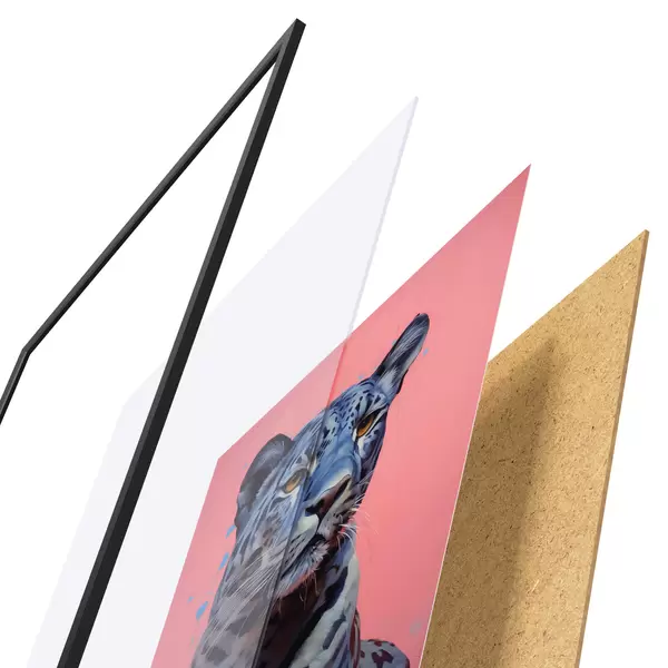 Il poster è composto da cornice, plexiglass, immagine stampata e supporto in truciolato. Il poster può essere immediatamente appeso alla parete grazie ai supporti sul retro.