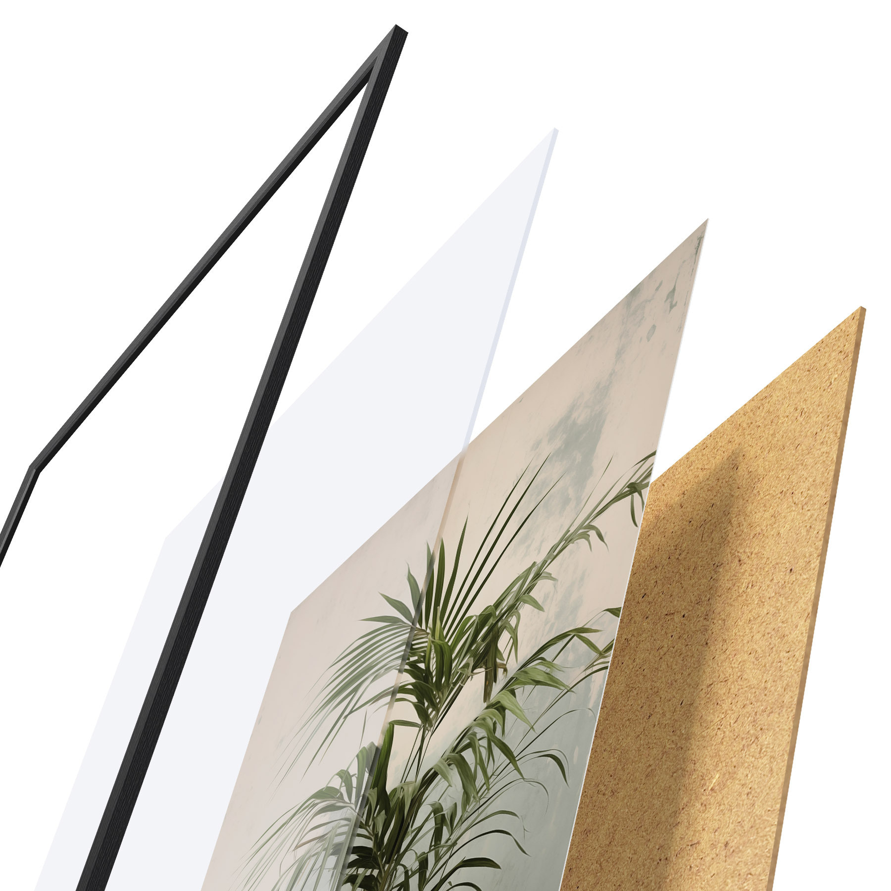 Il poster è composto da cornice, plexiglass, immagine stampata e supporto in truciolato. Il poster può essere immediatamente appeso alla parete grazie ai supporti sul retro.