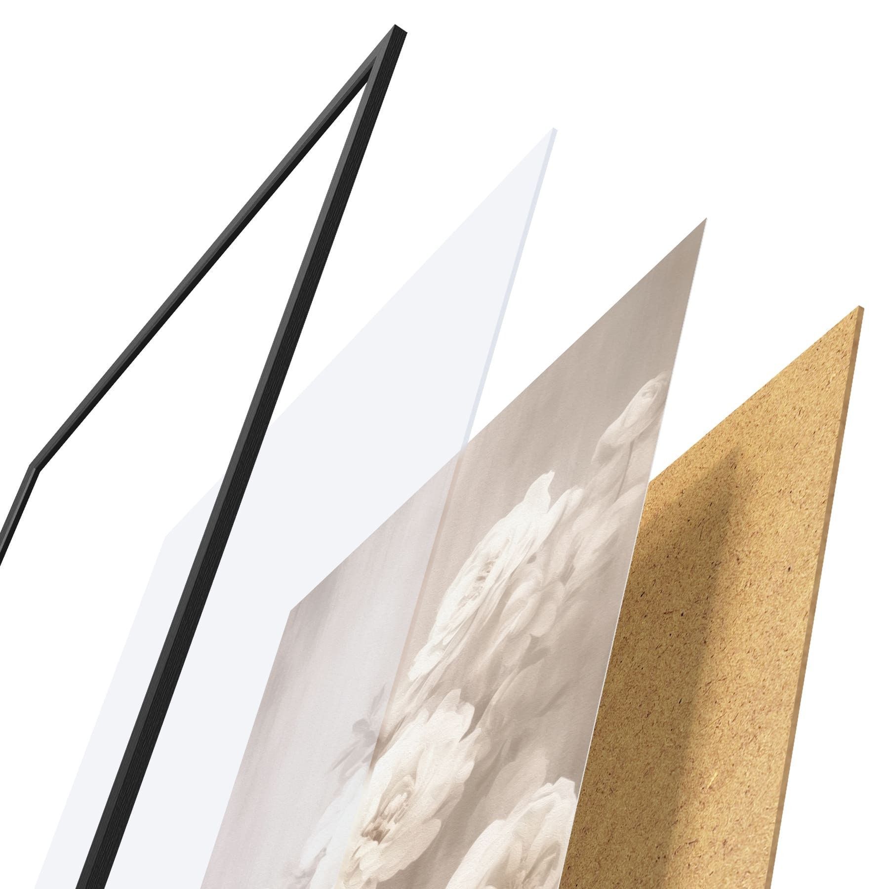 Il poster è composto da cornice, plexiglass, immagine stampata e supporto in truciolato. Il poster può essere immediatamente appeso alla parete grazie ai supporti sul retro.