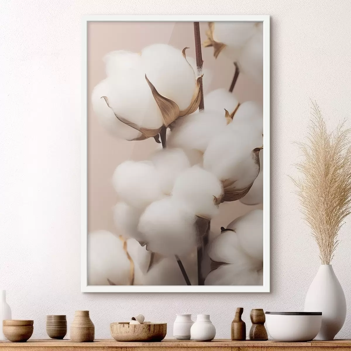 Poster Fiori di cotone su sfondo beige Nr f41706