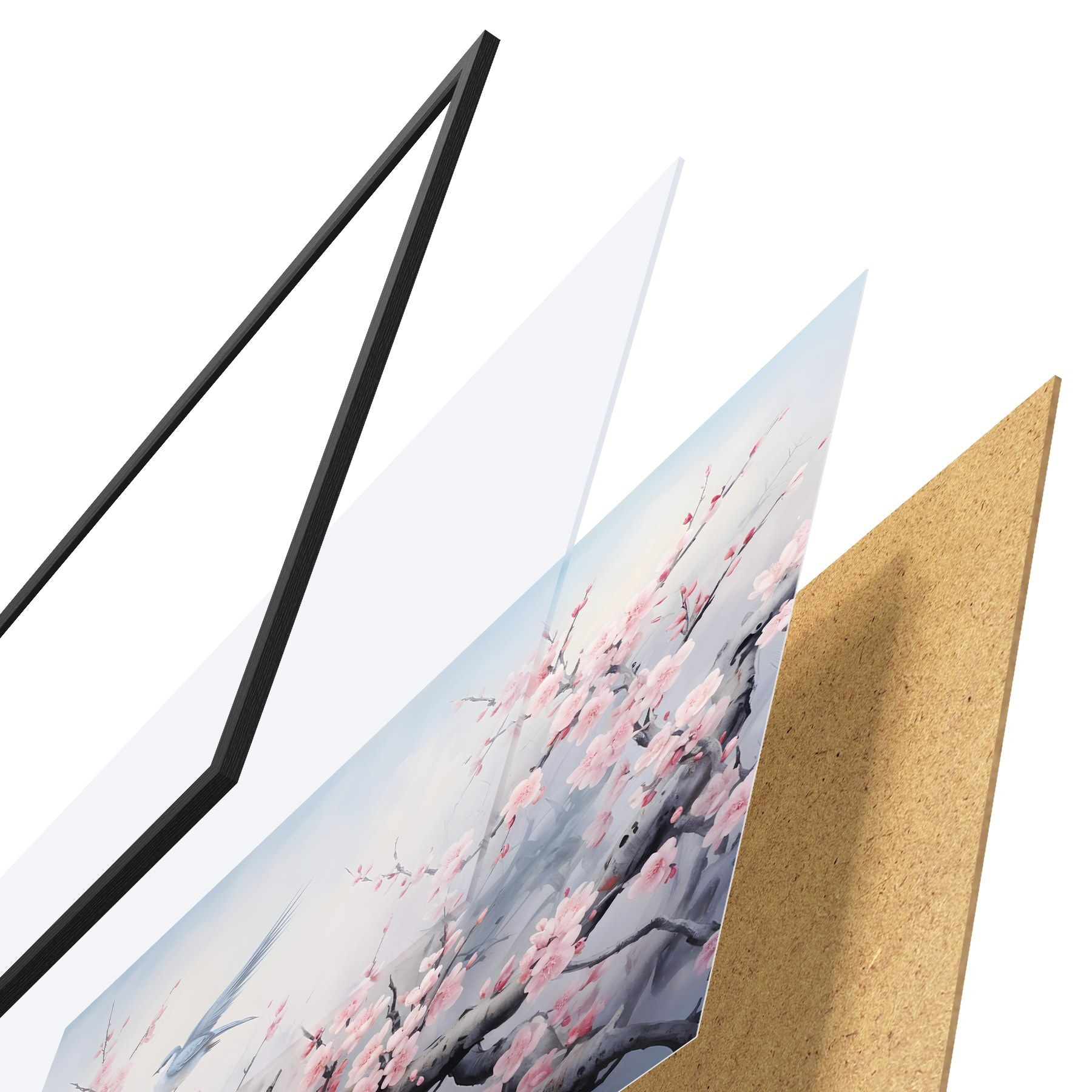 Il poster è composto da cornice, plexiglass, immagine stampata e supporto in truciolato. Il poster può essere immediatamente appeso alla parete grazie ai supporti sul retro.