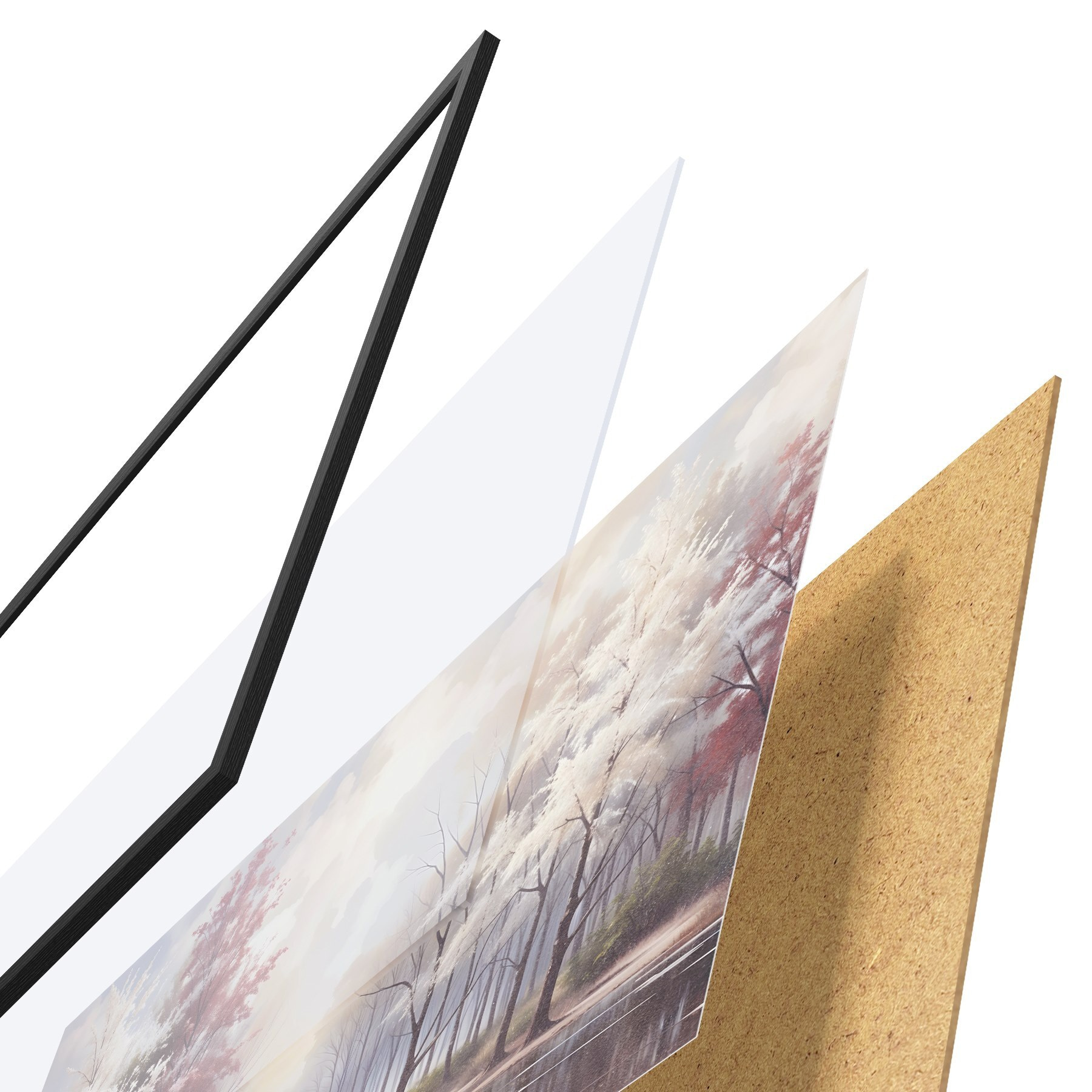 Il poster è composto da cornice, plexiglass, immagine stampata e supporto in truciolato. Il poster può essere immediatamente appeso alla parete grazie ai supporti sul retro.