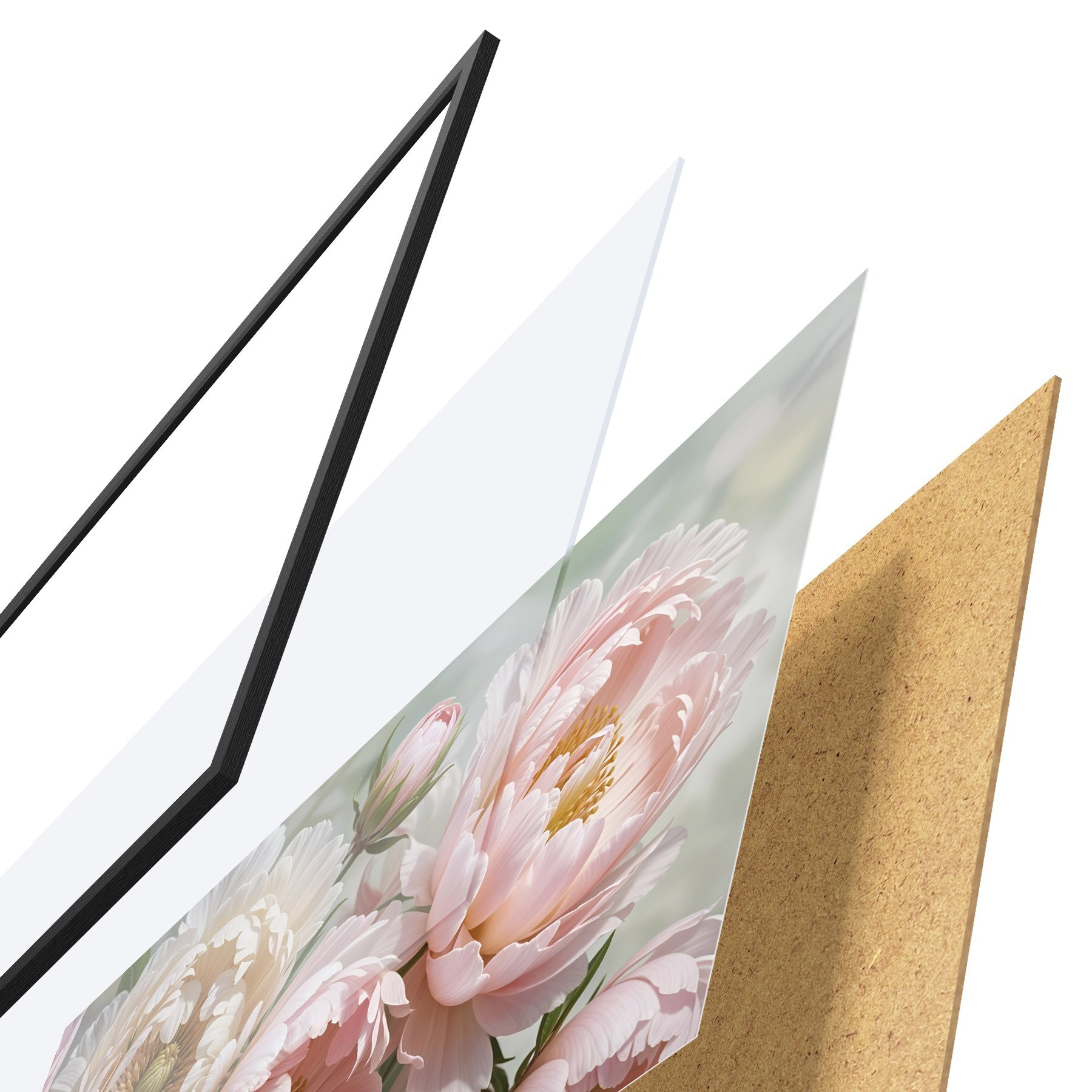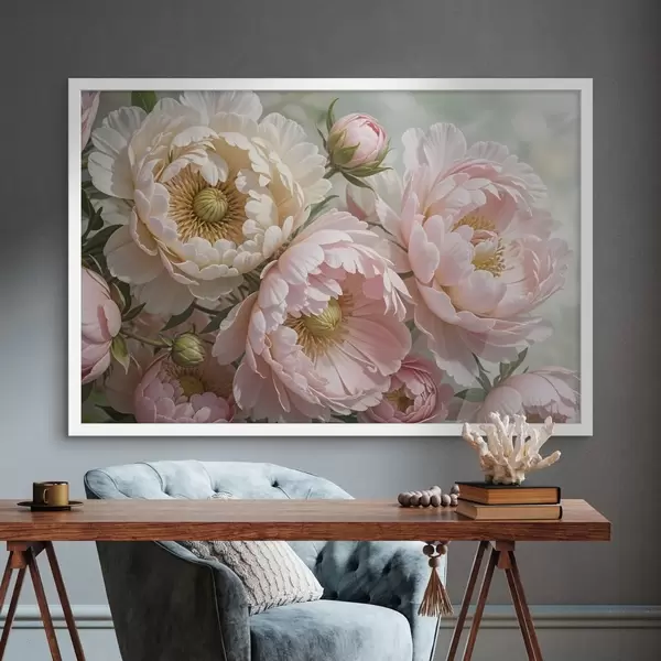 Poster Numerosi fiori di peonia grandi e rigogliosi, con petali delicati nei toni del rosa e del bianco Nr f41729