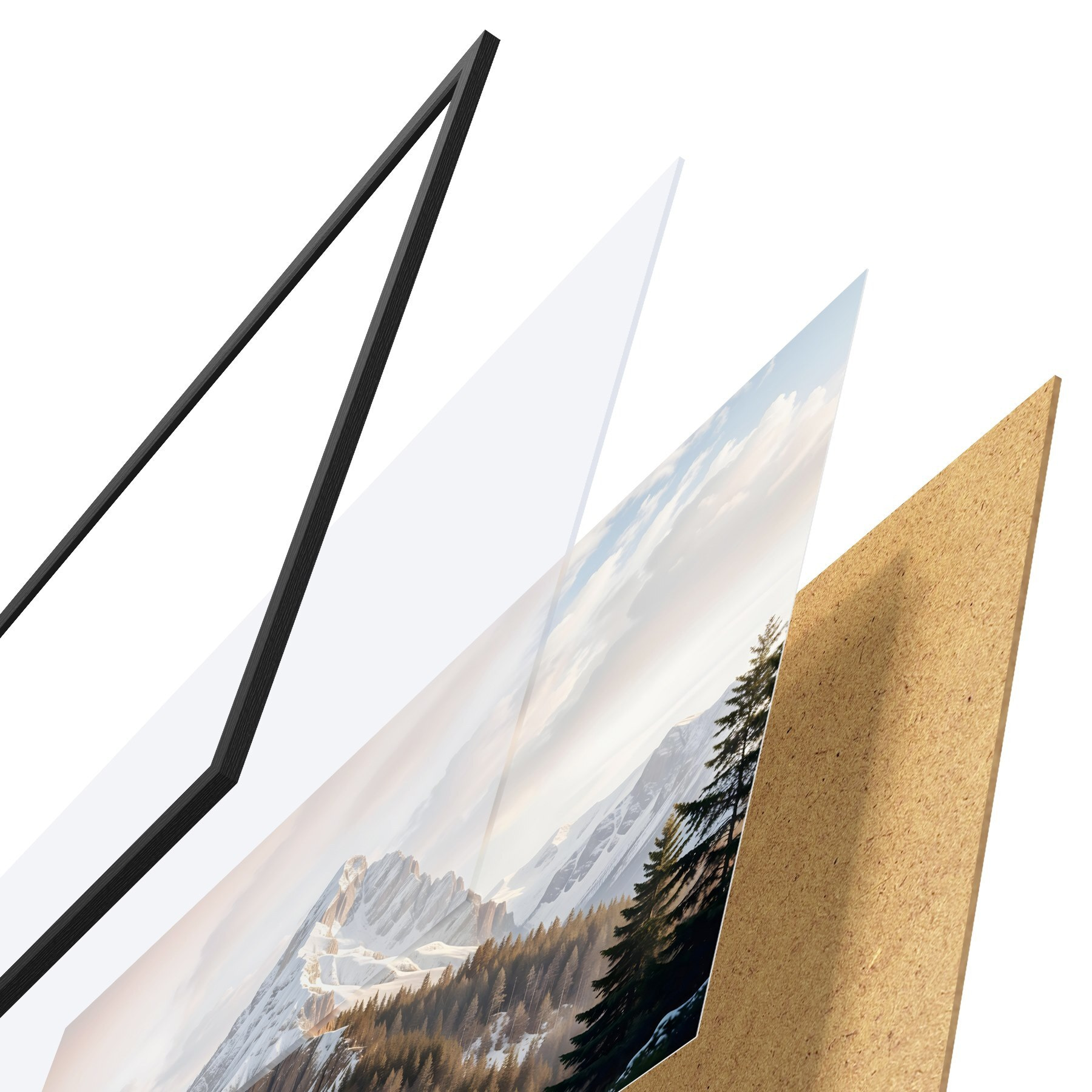 Il poster è composto da cornice, plexiglass, immagine stampata e supporto in truciolato. Il poster può essere immediatamente appeso alla parete grazie ai supporti sul retro.