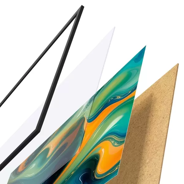 Il poster è composto da cornice, plexiglass, immagine stampata e supporto in truciolato. Il poster può essere immediatamente appeso alla parete grazie ai supporti sul retro.