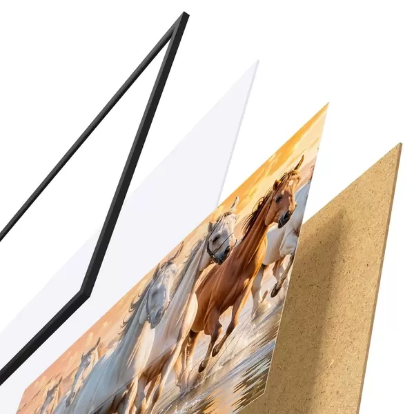 Il poster è composto da cornice, plexiglass, immagine stampata e supporto in truciolato. Il poster può essere immediatamente appeso alla parete grazie ai supporti sul retro.