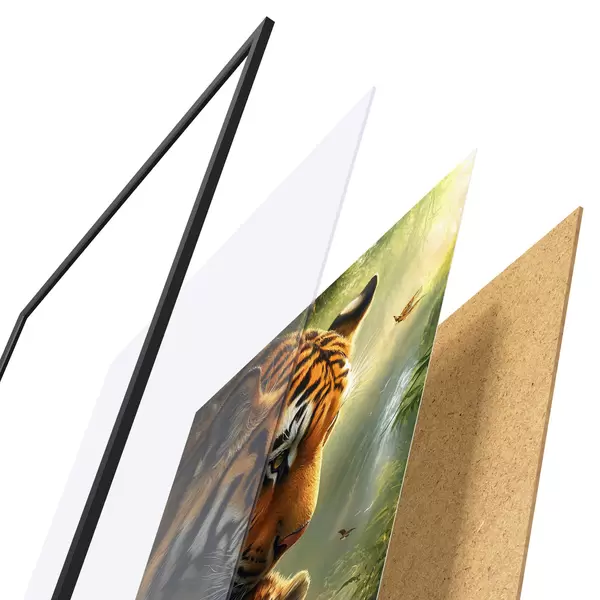Il poster è composto da cornice, plexiglass, immagine stampata e supporto in truciolato. Il poster può essere immediatamente appeso alla parete grazie ai supporti sul retro.