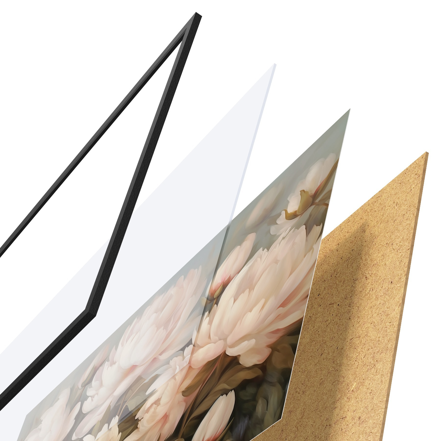 Il poster è composto da cornice, plexiglass, immagine stampata e supporto in truciolato. Il poster può essere immediatamente appeso alla parete grazie ai supporti sul retro.