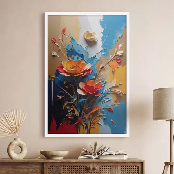 Poster Fiori su sfondo astratto multicolore in stile pittura ad olio Nr f41769