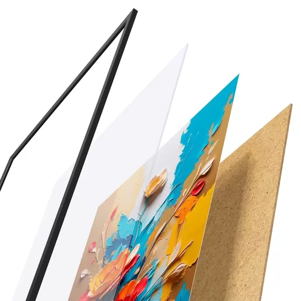 Il poster è composto da cornice, plexiglass, immagine stampata e supporto in truciolato. Il poster può essere immediatamente appeso alla parete grazie ai supporti sul retro.