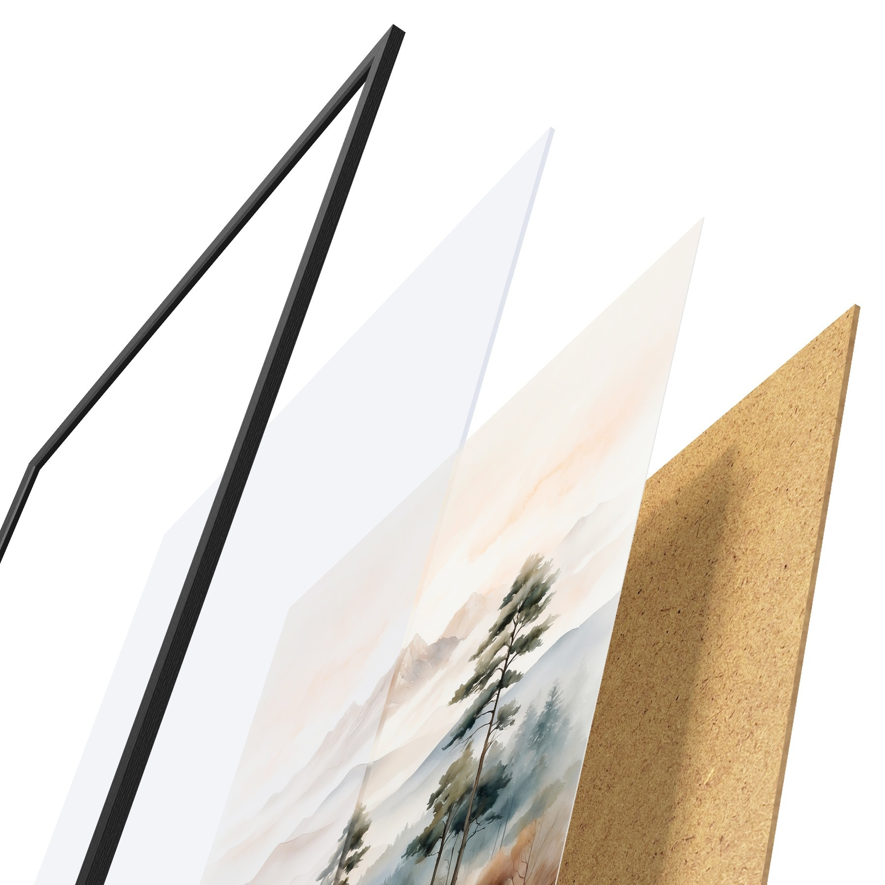 Il poster è composto da cornice, plexiglass, immagine stampata e supporto in truciolato. Il poster può essere immediatamente appeso alla parete grazie ai supporti sul retro.